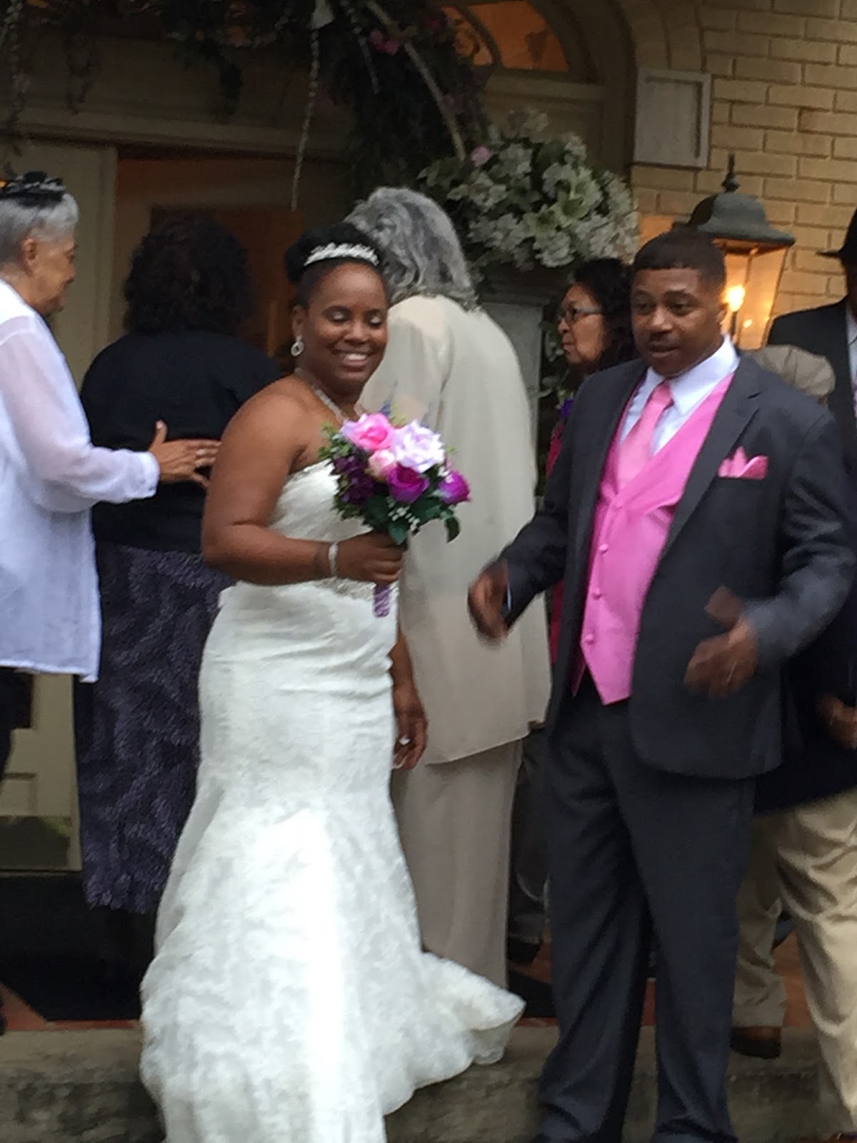 What better way to title this post than to channel my inner Prince. Ha! When the rain comes down the frizz goes up. Approximately 2 rain filled weddings this weekend and not a curl in sight! But let me tell you that I had an absolute blast this weekend. Shall I share the deets? The wedding was at a beautiful Victorian style home in Charlotte, NC. The bride was beautiful and she was chauffeured in on her corvette in rain. ย Sounds awful but the wedding was absolutely fabulous. The bride was graceful and she handled the rain with ease and poise. Beautiful purple and pinks were all the rage at this event and with umbrella in hand and a bag full of grape and pink flavored Nerds candy, we conquered the house snapping shots of the beautiful landscape and an occasional shot of me ๐ Charlie and I expected nothing less than elegant. No rain could stop this wedding and the bridal party was all smiles.