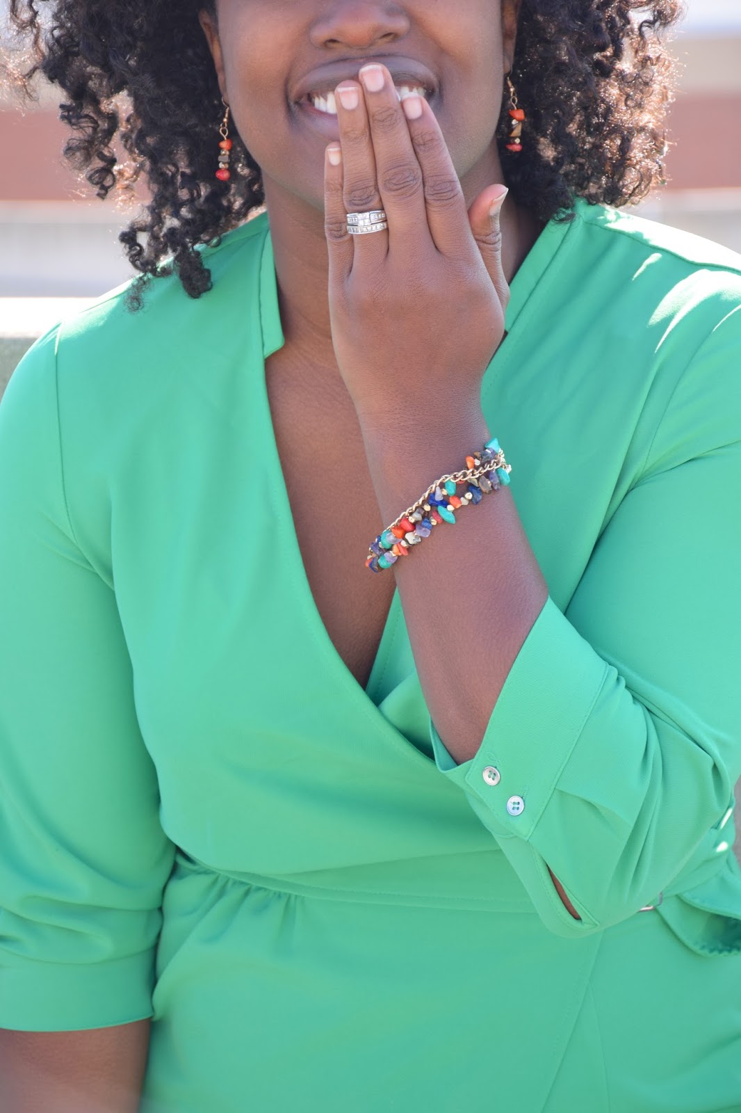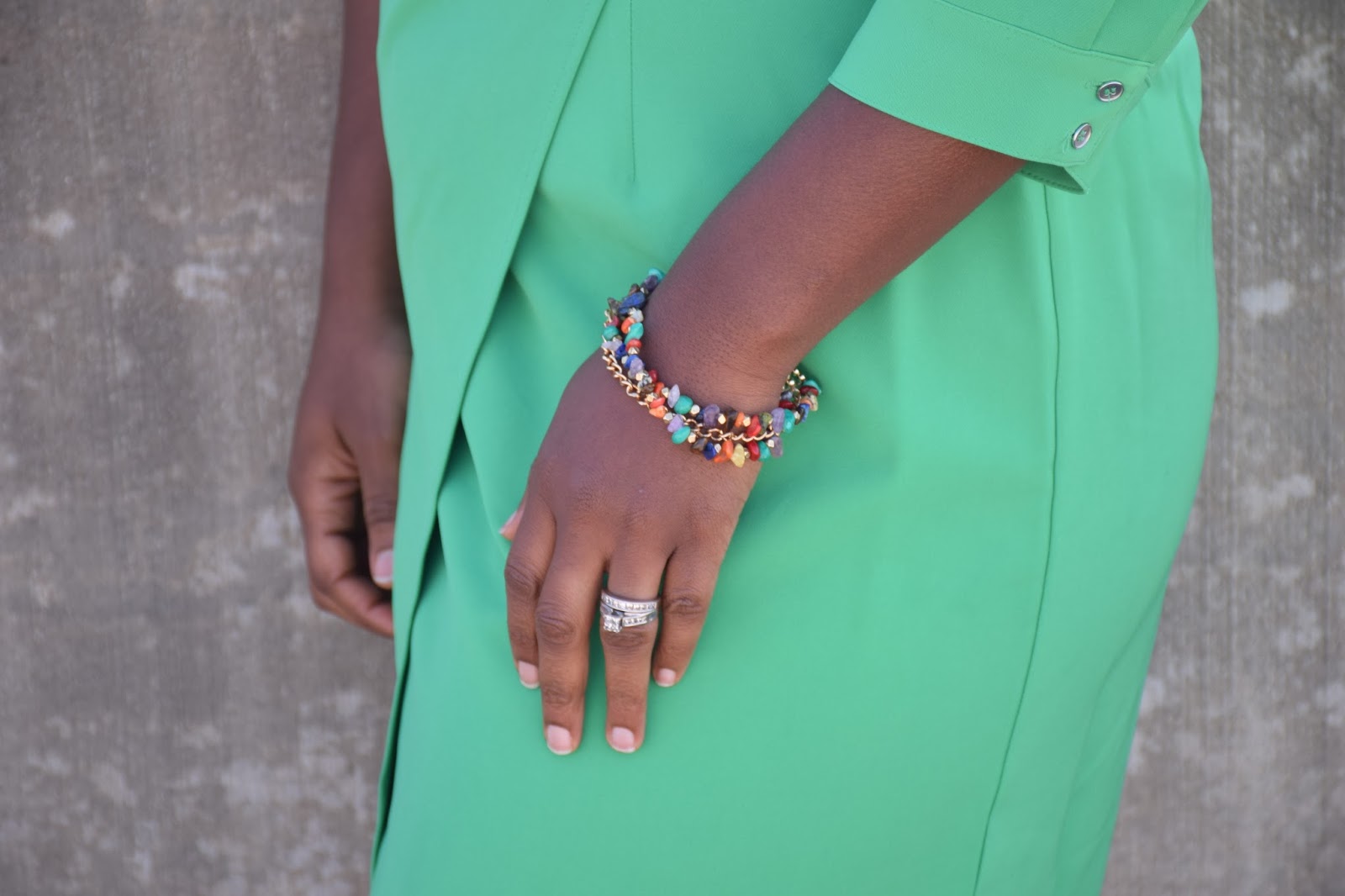 It’s all about the details! I enjoy putting colorful pieces together. I snagged this earring and bracelet set on a cruise to the Caribbeans in December because it was colorful and I knew I could wear it with just about anything. The necklace is a bit busy and you’ve probably seen it in a few of my previous post but the earrings and bracelet are my “go to” for solid colored pieces like the green dress I wore. I’ve purchased some pretty obnoxious accessories in my day and I say with complete confidence that these earrings and matching bracelet are by far the most practical pieces I own. Typically, if it’s not unusual or seems to be ordinary to the eye then I’m not purchasing. Like many things in my life, I like to go left and that does not exclude my taste in clothes and accessories. I everything and anything bright, bold, shiny and unique. I have a bit of an obsession with color.