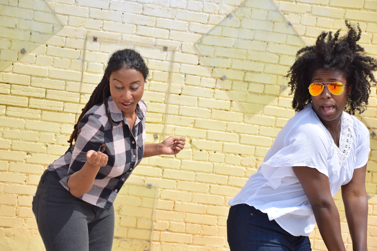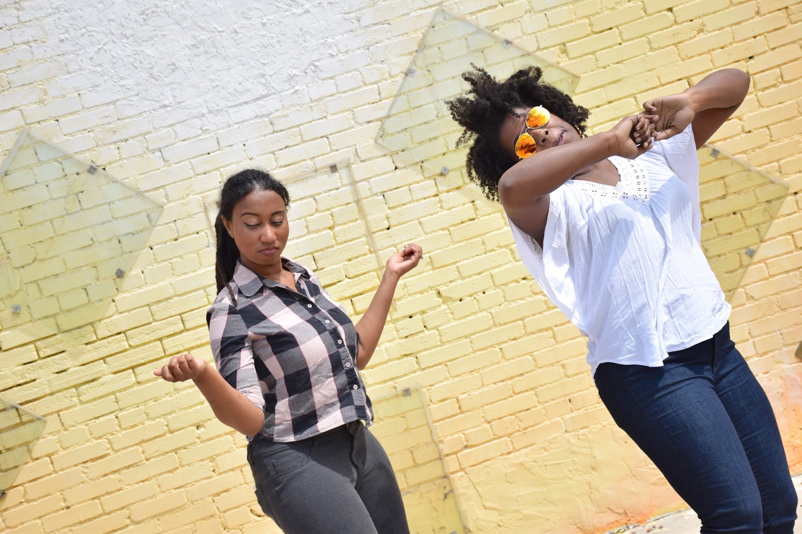 These pictures are perfect visuals of what happens when 3 creative minds come together:we eat massive amounts of fried dough, chug down way to much black coffee and have an impromptu photo shoot in the downtown area while twerking to no music. Yep, that my friends is my idea of a good darn time!
