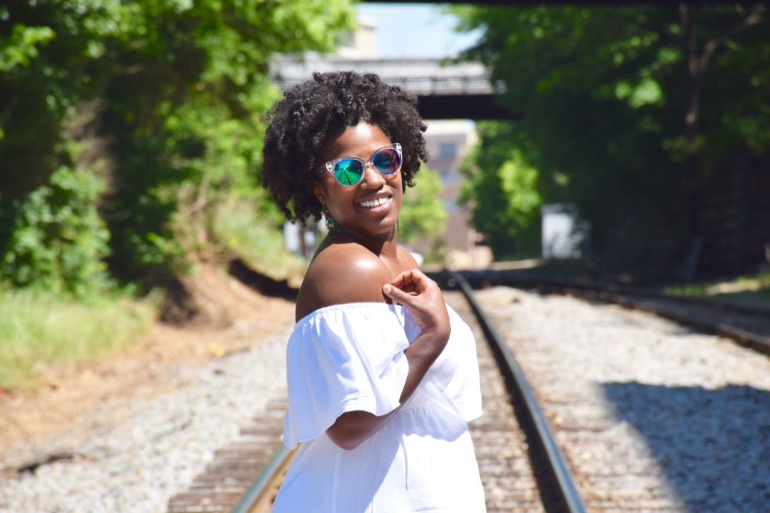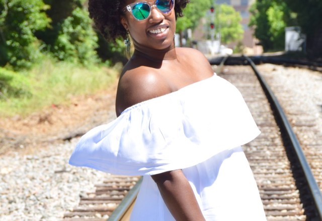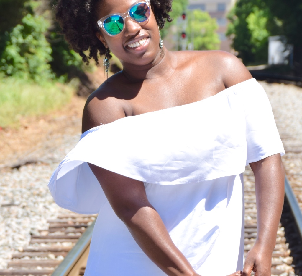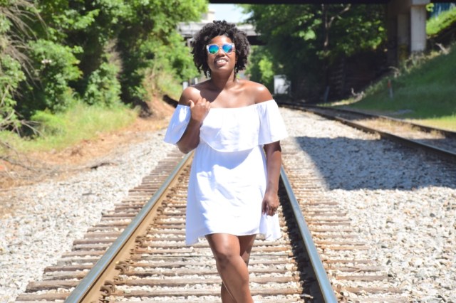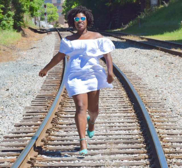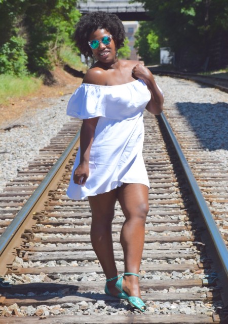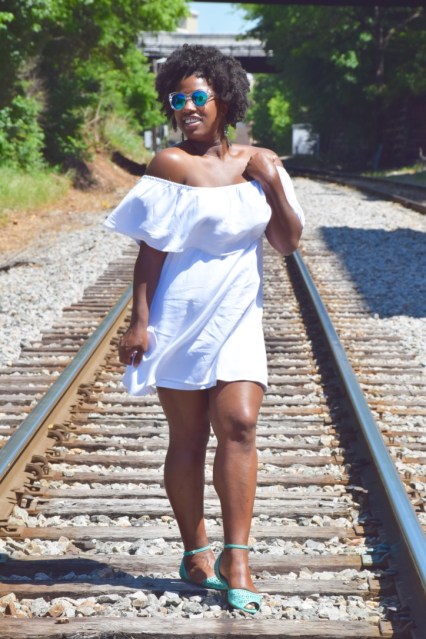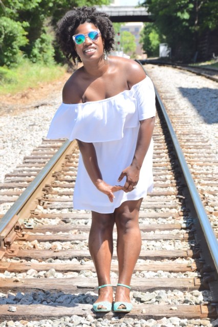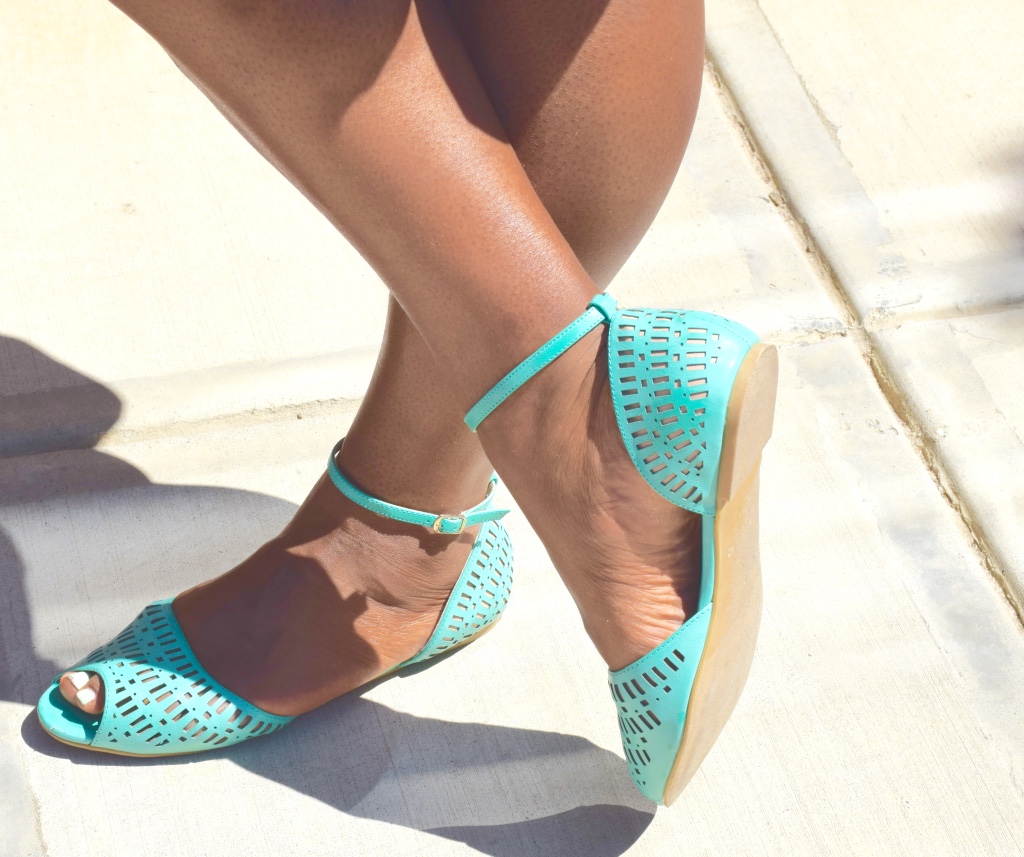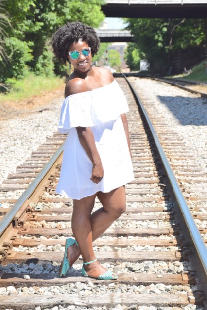 I decided to revisit my old stomping grounds (Downtown Raleigh) and soaked up some serious sun rays and now have a few brownish tan lines to prove it. You can do just about anything with this light, airy white dress. I kept it real simple this time around and added some blue tinted sunnies, chandelier earrings and finished the look off with my teal peep toe flats. This look is great for a warm day out at the park or for meeting up with friends for a brunch or coffee. What I love most about this dress is that it can easily transition to the perfect beach look; add a floppy hat and some cute casual sandals and BOOM, instant beach wear!