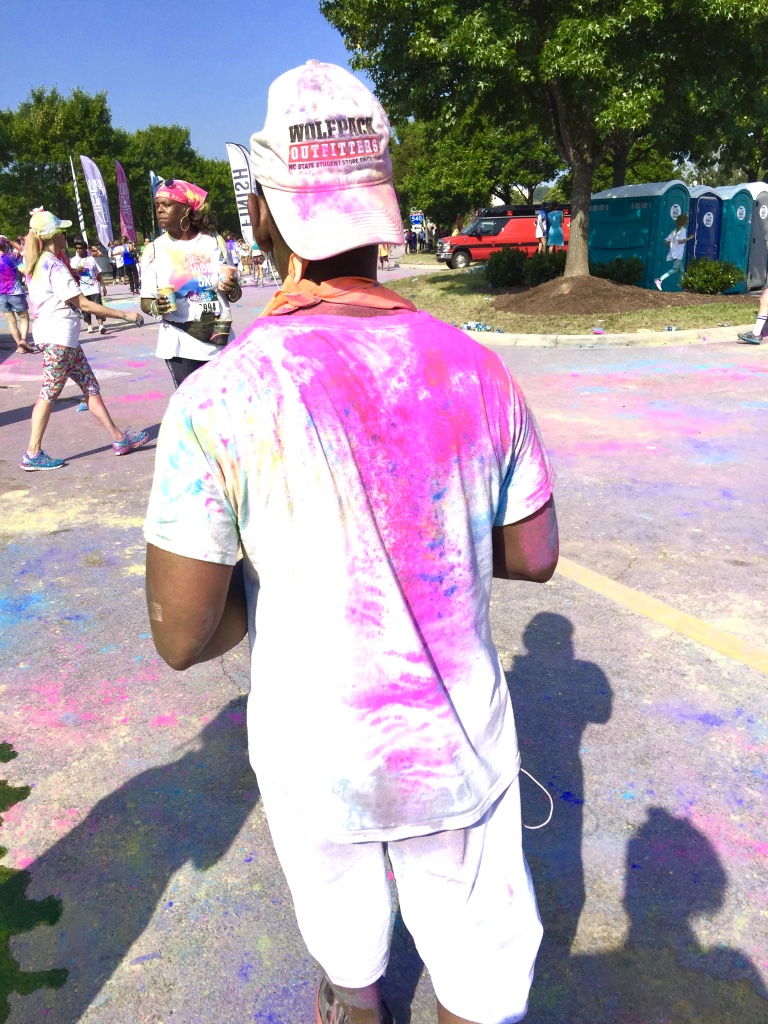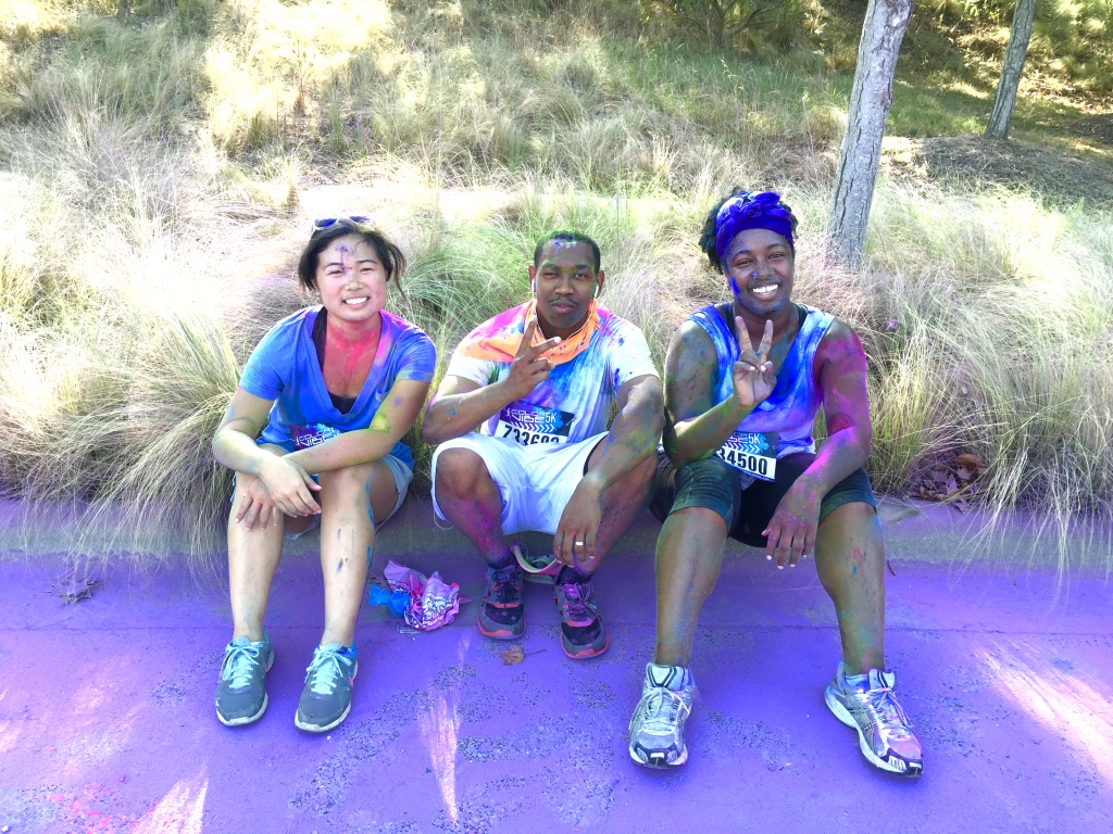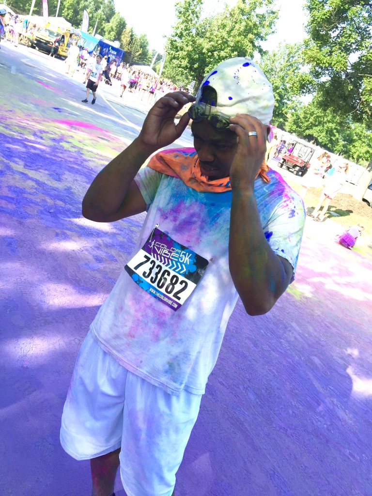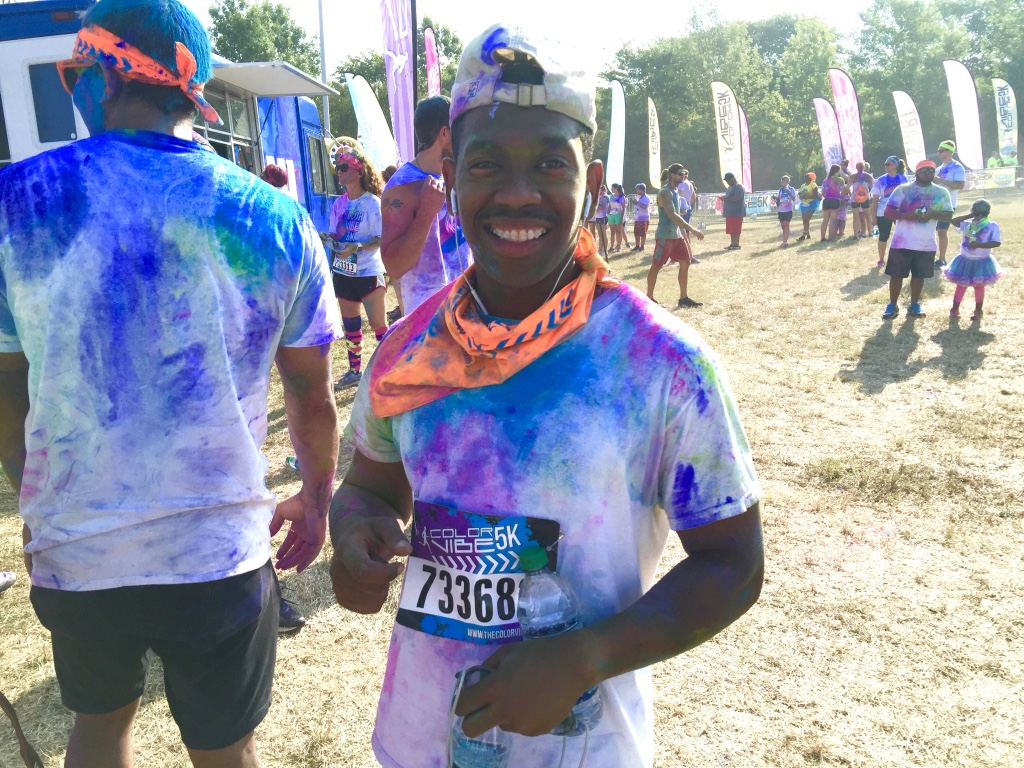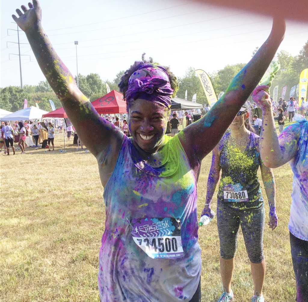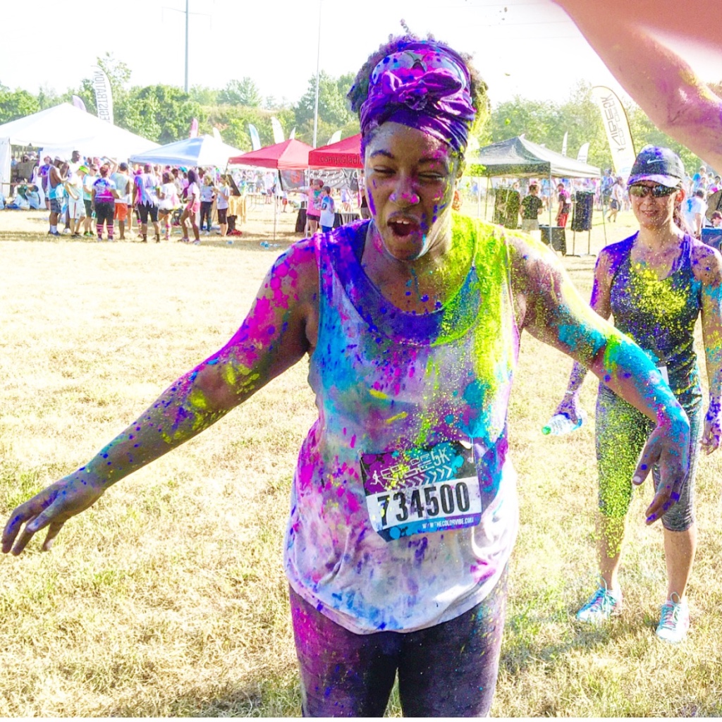 Guess who completed their first 5k? Deidra Craig did, and I’m proud of it! I spent the weekend getting color dust tossed at me in the blazing hot sun while attempting to complete 3 miles. Might I add that it was all worth it. I was accompanied by none other than the color squad of the century, my girl Hannah, a few co-workers and of course, Charlie Boo. I spent months training for this darn race and ended being so distracted by that magic color dust that I’m not even sure what my run time was. Of course, to get my moneys worth, I made sure every inch of my body was covered in color-head to toe. Surprisingly enough, the color washed right out of my hair-definitely one of my major concerns that day. I will say this though, the color dried my curls out! I had to deep condition for over an hour to regain moisture balance and detangling was a beast, so if you decide to do one of these runs, I suggest covering up your hair with a shower cap or scarf. I’d rather look funny than have to go through the deep conditioning and detangling session I went through. I guesstimate it took about 3 hours to do my hair because of that darn color. Note to self:magical colored fairy dust doesn’t make your hair grow. 🙂