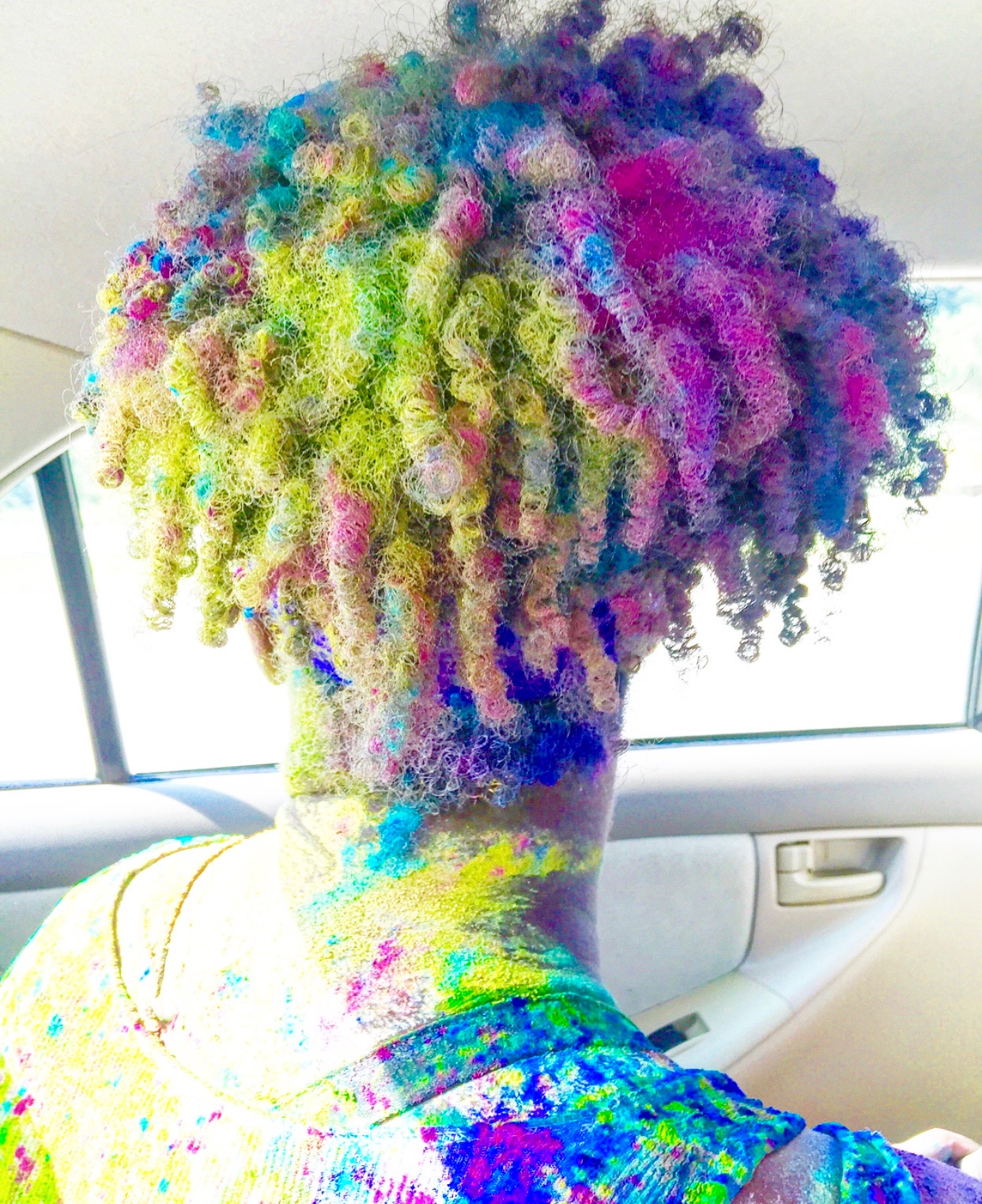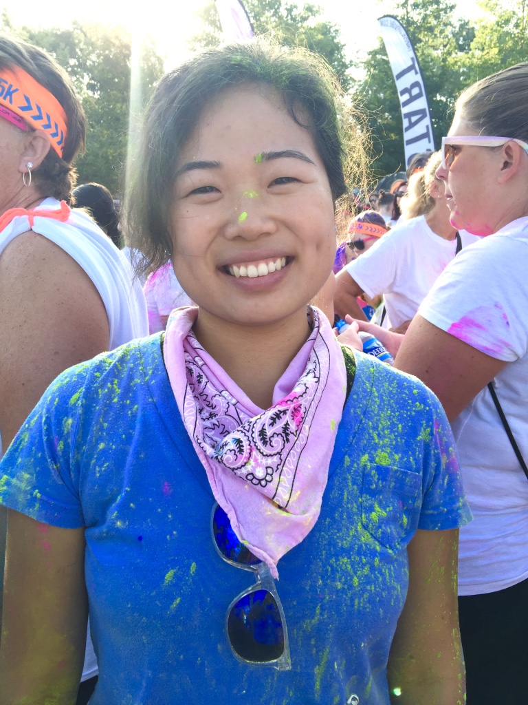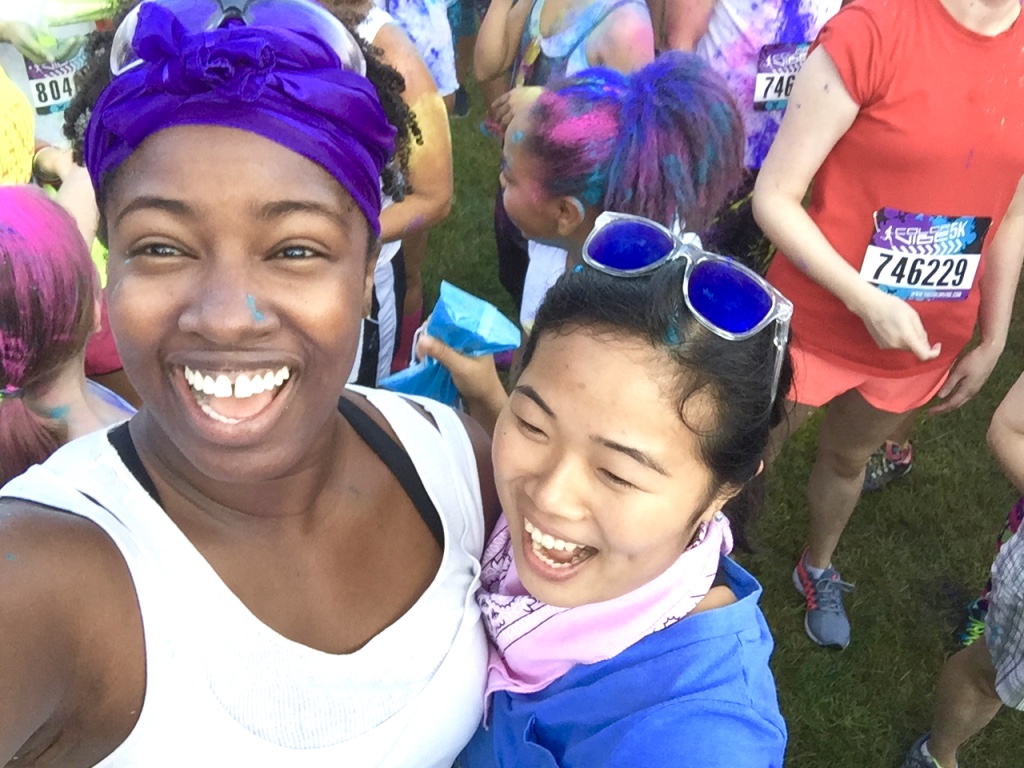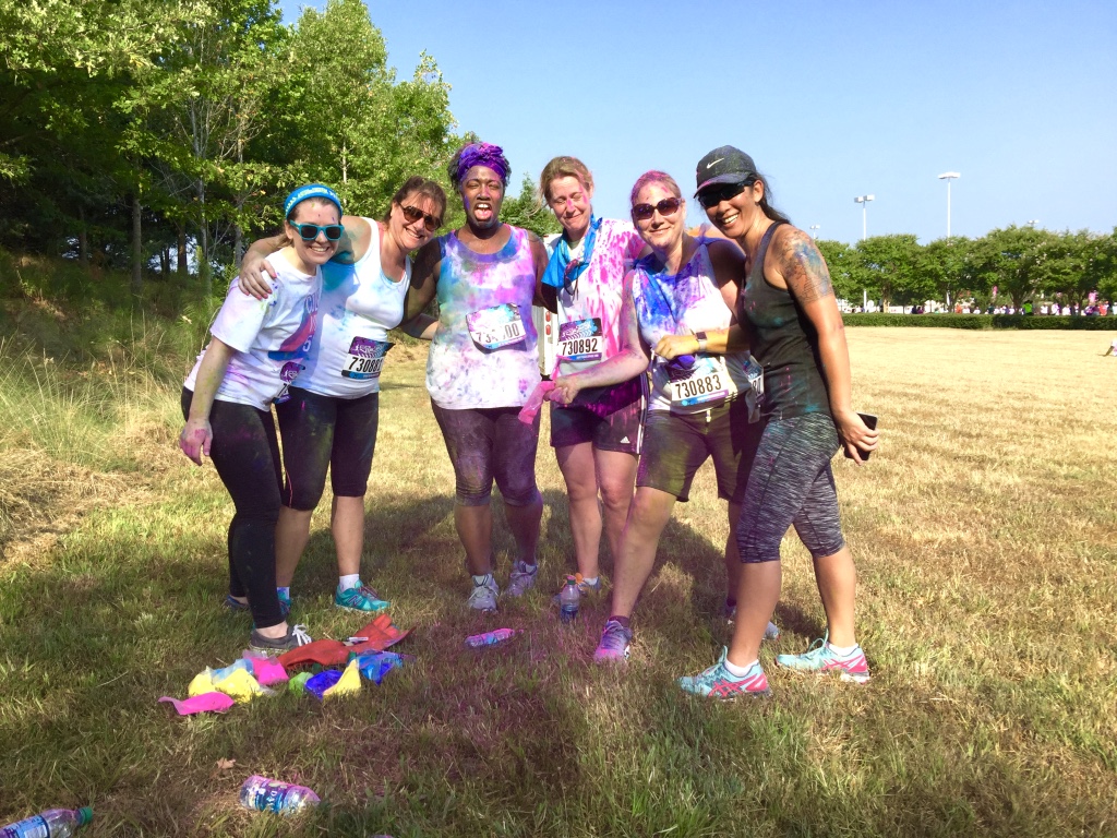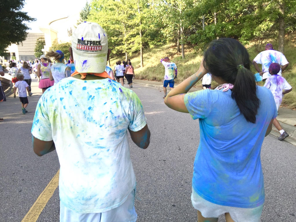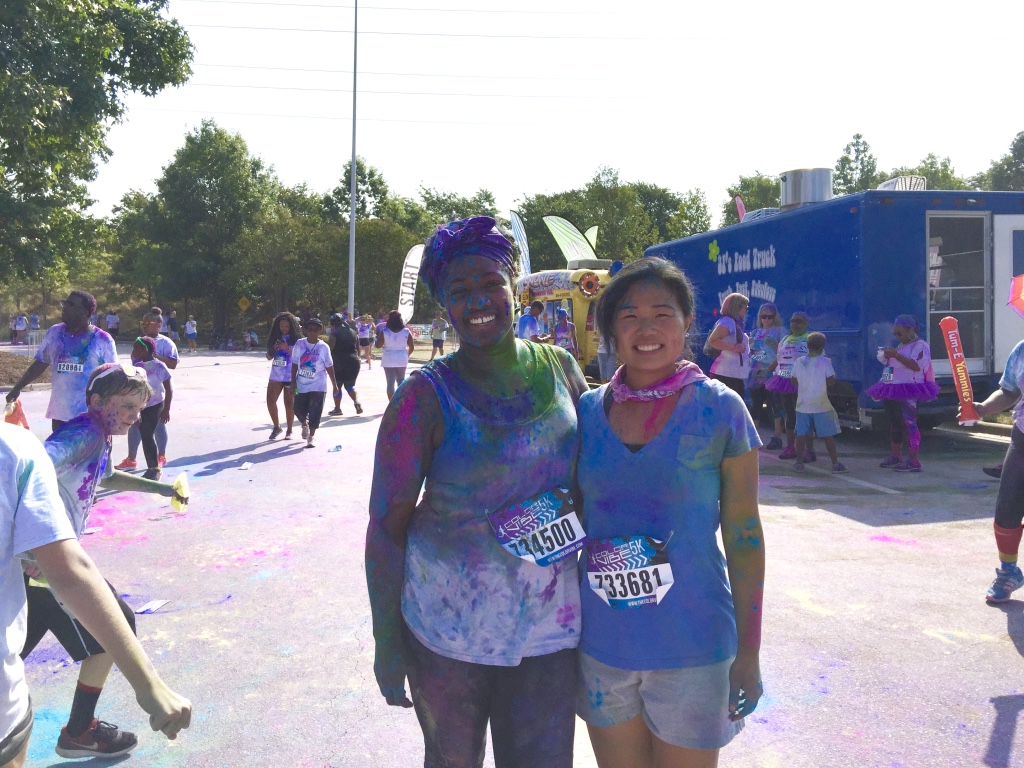 Guess who completed their first 5k? Deidra Craig did, and I’m proud of it! I spent the weekend getting color dust tossed at me in the blazing hot sun while attempting to complete 3 miles. Might I add that it was all worth it. I was accompanied by none other than the color squad of the century, my girl Hannah, a few co-workers and of course, Charlie Boo. I spent months training for this darn race and ended being so distracted by that magic color dust that I’m not even sure what my run time was. Of course, to get my moneys worth, I made sure every inch of my body was covered in color-head to toe. Surprisingly enough, the color washed right out of my hair-definitely one of my major concerns that day. I will say this though, the color dried my curls out! I had to deep condition for over an hour to regain moisture balance and detangling was a beast, so if you decide to do one of these runs, I suggest covering up your hair with a shower cap or scarf. I’d rather look funny than have to go through the deep conditioning and detangling session I went through. I guesstimate it took about 3 hours to do my hair because of that darn color. Note to self:magical colored fairy dust doesn’t make your hair grow. 🙂