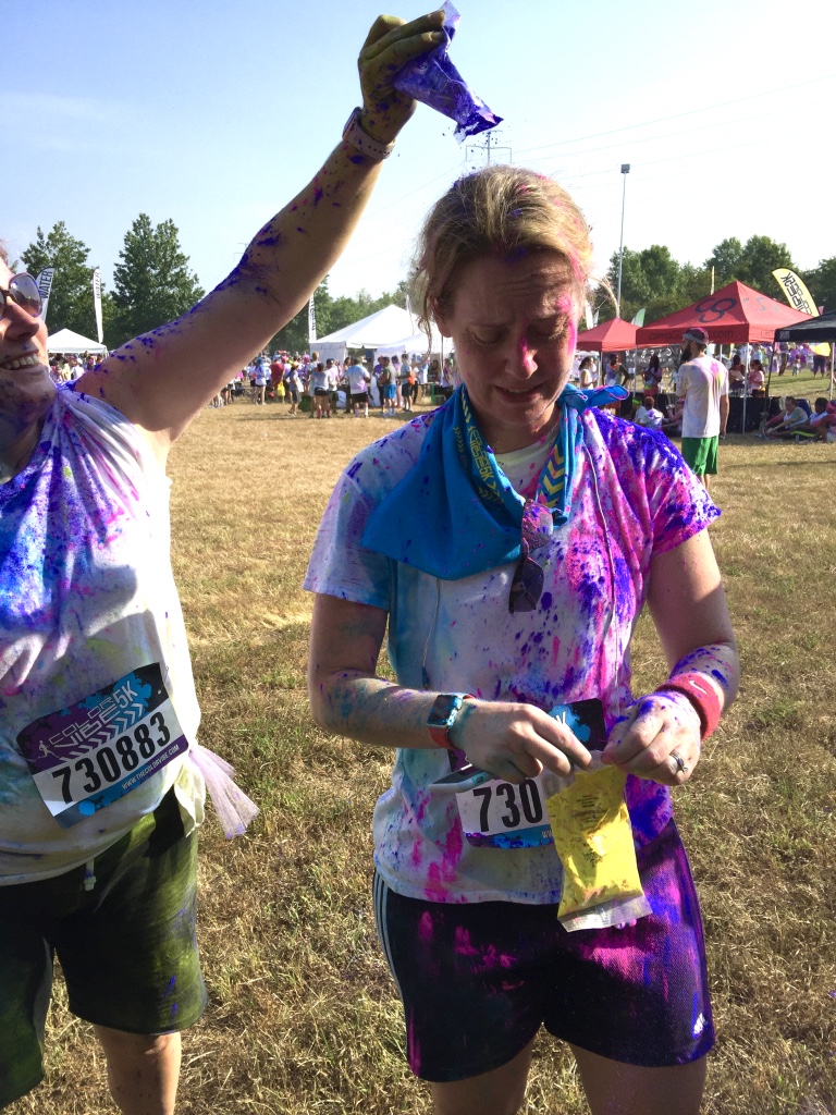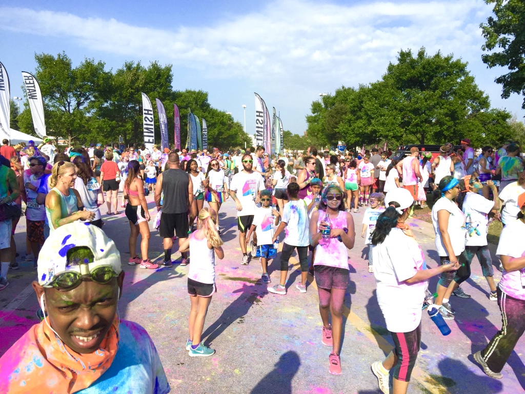 FYI, if your thinking you’d like some of this magical colored fairy dust blasted on you for no good reason in 98 degree weather with not a water bottle in site for 3 miles, then check out the ColoVibe in a city near you