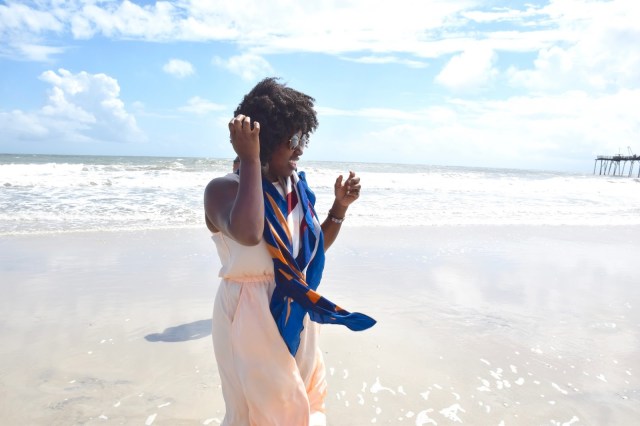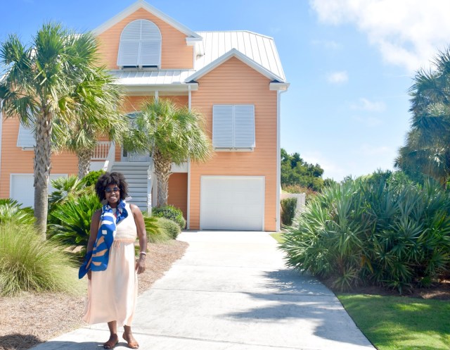 I had Charlie snap a few shots of me in front of my favorite beach house, you know? The sherbert- orangesicle beach house I’ve yapped about in previous post. I kept telling everyone I am will own that house one day. There are so many beach houses that are bigger, fancier and way more detailed but this one just makes me happy. There was a car parked in the driveway, I was so tempted to knock on the door and ask for a tour of the inside, but how awkward would that have been for them ? 🙂 LOL. Can you imagine: “Hello Mr. or Mrs. X, I’d like a tour of your house please, because it’s orange and brings me good vibes. Also, can I use your restroom? Perhaps cop a few refreshments off of you? I’m parched”. LOL 🙂