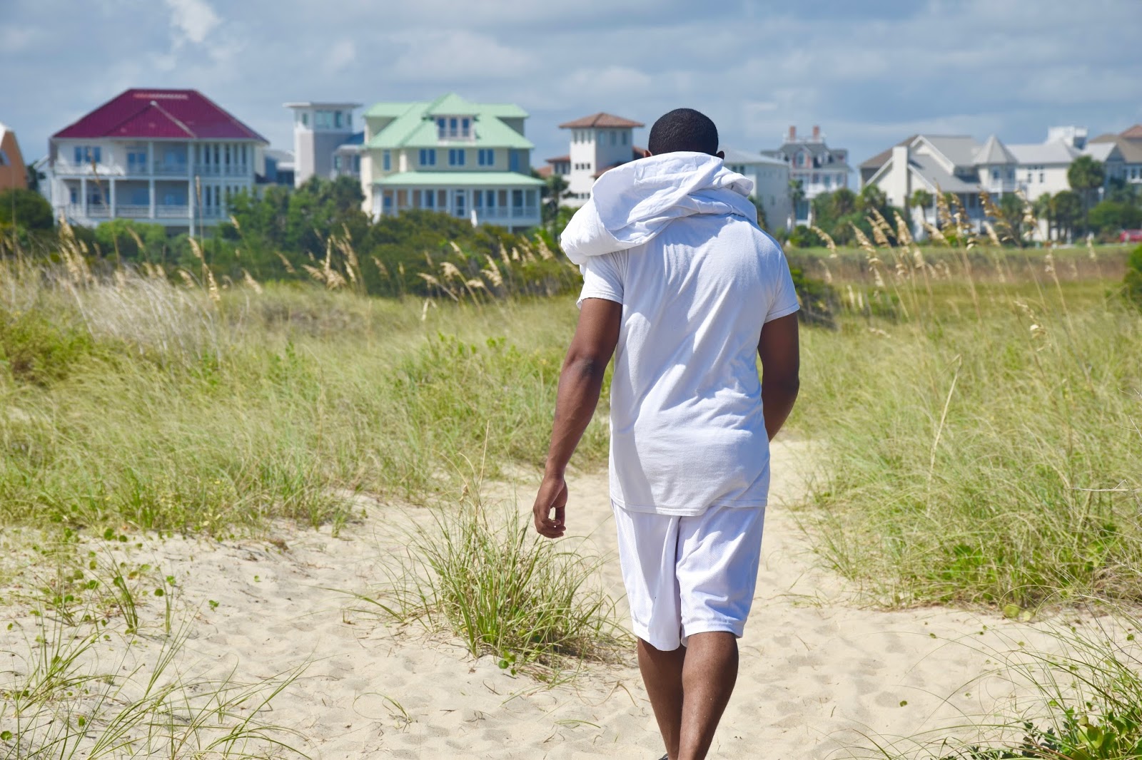 I had Charlie snap a few shots of me in front of my favorite beach house, you know? The sherbert- orangesicle beach house I’ve yapped about in previous post. I kept telling everyone I am will own that house one day. There are so many beach houses that are bigger, fancier and way more detailed but this one just makes me happy. There was a car parked in the driveway, I was so tempted to knock on the door and ask for a tour of the inside, but how awkward would that have been for them ? 🙂 LOL. Can you imagine: “Hello Mr. or Mrs. X, I’d like a tour of your house please, because it’s orange and brings me good vibes. Also, can I use your restroom? Perhaps cop a few refreshments off of you? I’m parched”. LOL 🙂