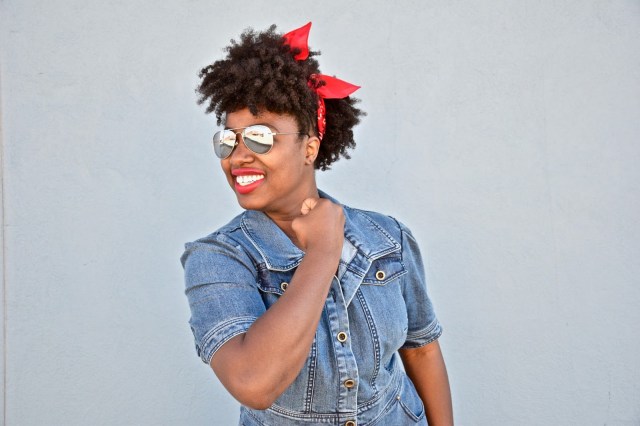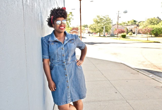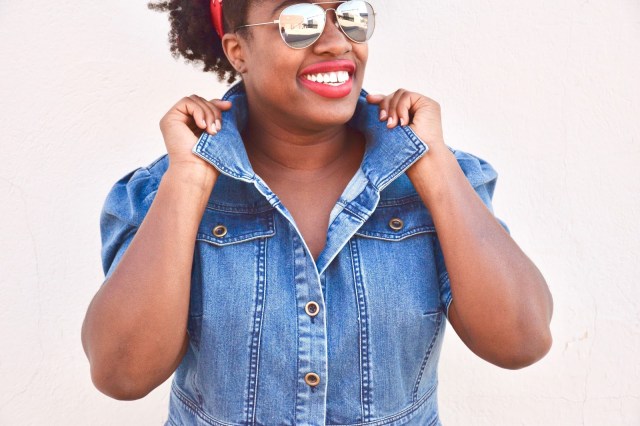 I put together one of the cutest Memorial Day looks for this weekend and I’m super excited to have teamed up with eShakti for their #RealFashionForRealPeople campaign to do it! Denim has always been a fav of mine, and I’m no stranger to a simple denim dress with quirky details. The best part about denim is that you can practically pair it with anything. I have denim tops, denim pants, denim skirts, but there is nothing like a simple denim dress to slip on when your on the go. For this look, I kept it real simple, and paired it with my cognac heels, red lippy and a red bandana to give it sort of a vintage vibe. Some other ideas to really elevate the look, and style the dress would be to add a scarf or layer it with a jacket, perhaps a lighter wash denim jacket. Denim on denim is a big trend right now. I’ve worn this dress 3 or 4 times already and have dressed it down with some all white low top Chuck Taylor’s, and have dressed it up with bright colored blazers and fun, edgy shoes. The shoulders of the dress have a 80’s vintage feel that I just love, so styling this dress with big hair and fun bright colors is a must!