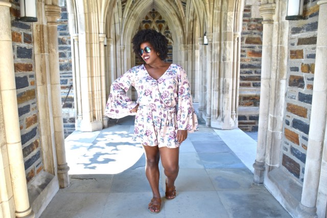 It’s Monday, it’s hot, and it’s humid, that means a floral romper and sandals are in order. In case you haven’t noticed, I wear rompers quite often these days. It hasn’t always been this way, as I’ve just recently starting sort of appreciating my muscular legs, and I have been feeling brave enough to show them off every now and then. There is certainly an art to picking the right romper given the plethora of romper options out there. My go to place for the ultimate romper is American Eagle. One of my favorite things about this store is they are size friendly! I’m a curvy girl, and us curvy girls can’t shop everything off the rack. Size really does matter and American Eagle goes up to size XXL. As you already know, I’ve had struggles finding the right fit for shorts, so rompers come with the same set of rules (i.e. flowy at the thigh, fitted at the waist, preferably no prints, just solid colors). The print for this post was not to bad so I bought it :).