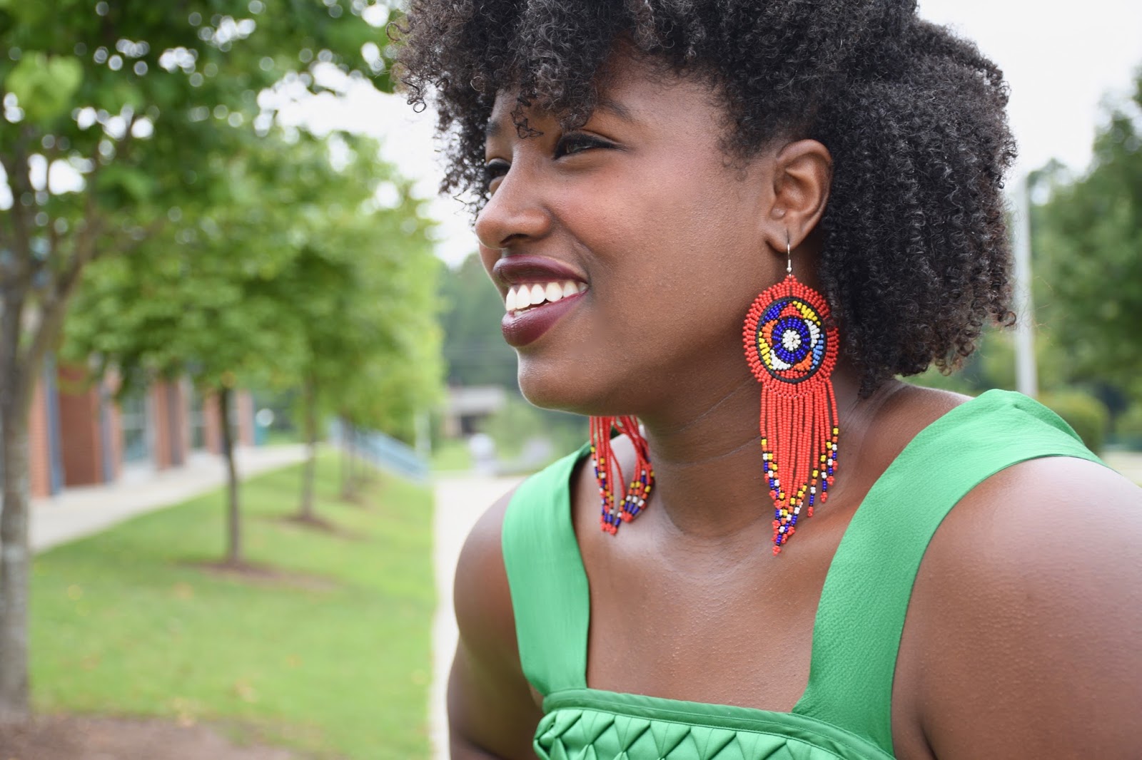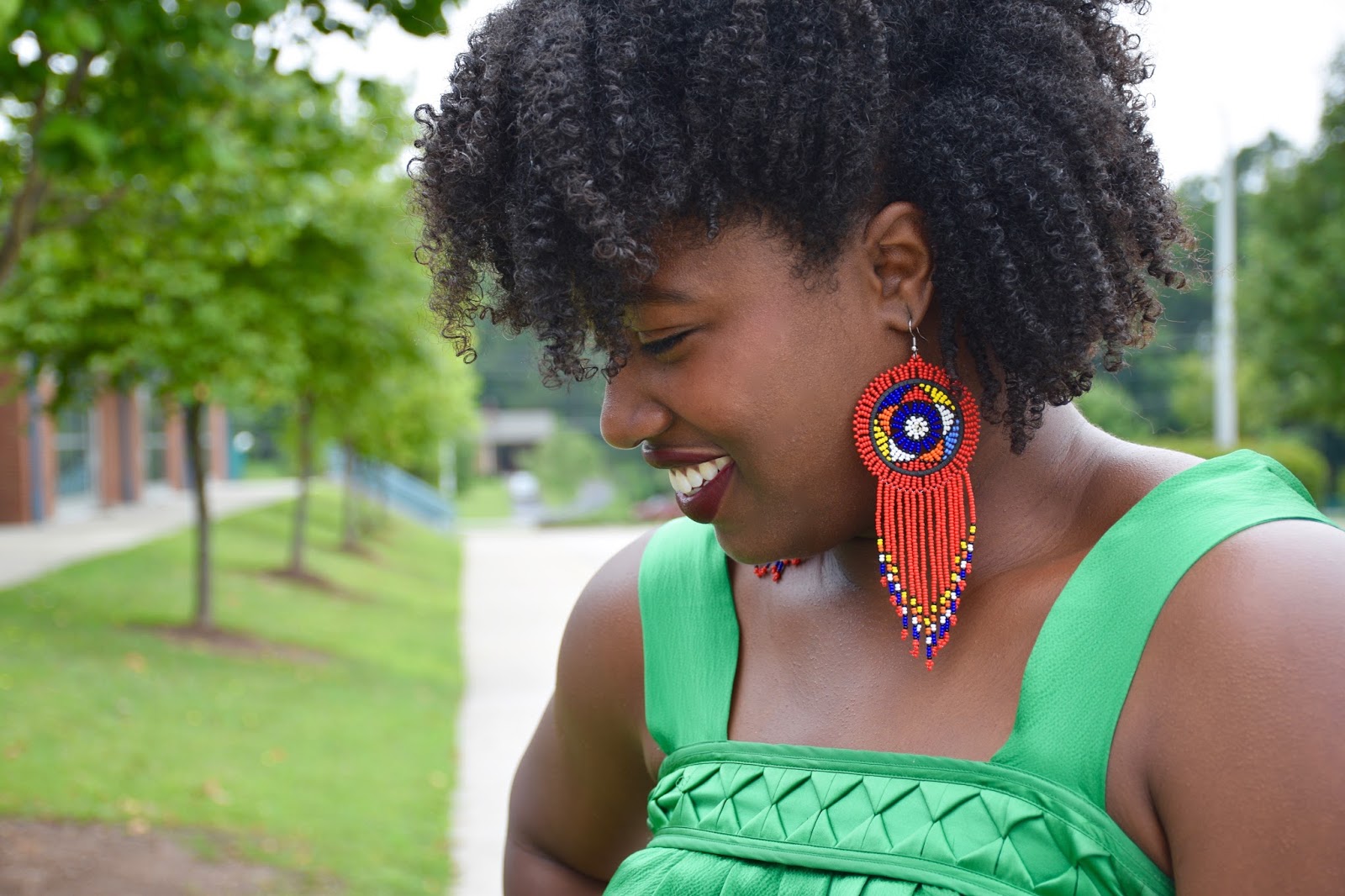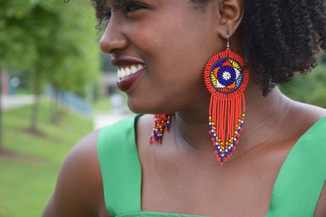 Happy Monday Everyone! Guess who’s big, bright, beautiful earrings are being given away this week? Yup, you guessed right, my earrings! I’ve teamed up with @UbuntuFashionista for the ultimate earring giveaway. Now you guys know I love bright colors so when I was shopping the UbuntuFashionista Esty shop I was in heaven, and nabbed these fun red earrings which I decided to pair with my green Banana Republic dress. Solid colored dresses and tops can be very boring so earrings like these really spruce up an outfit and give it some personality. When in doubt, throw on a bold earring and you’re outfit is instantly trendy and unique. One of my favorite things I like about my earrings is that they are handmade, in fact, all of the UbuntuFashionista accessories are handmade, and just like these earrings, each piece is intricate, eclectic and original. Don’t believe me, then order a piece of beaded jewelry for yourself on their Esty site. I currently have my eye on these cute earrings and this cute necklace.