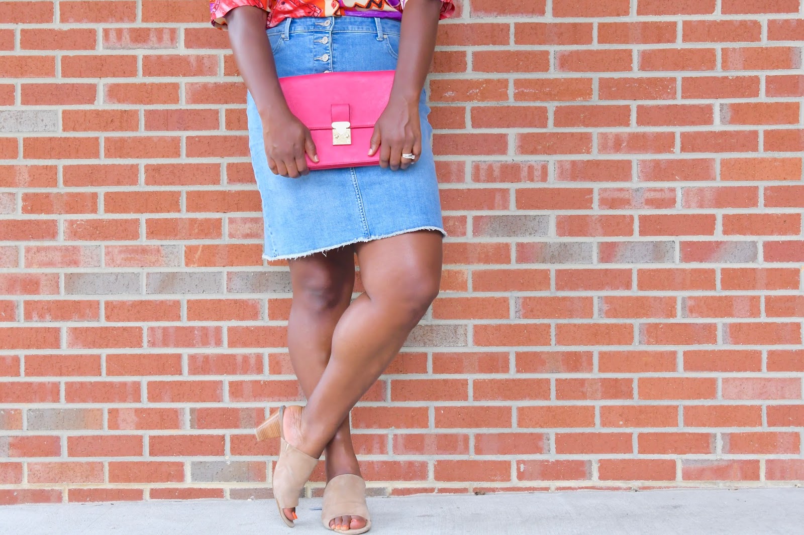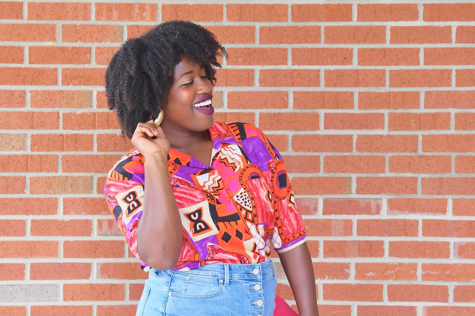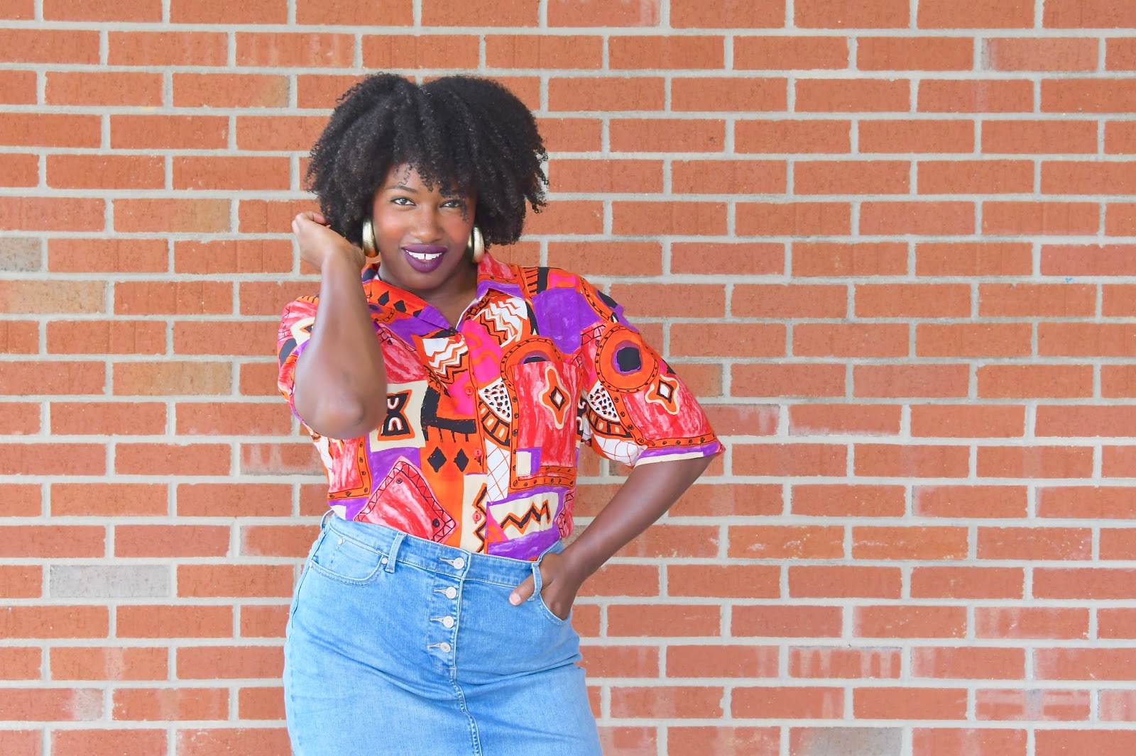 Taking it back, Living Single style with my 90’s button up from Father and Son and denim skirt from Talbots. If you don’t already know, I’ve been on this vintage kick ever since I attempted to give my clothes away for money to a couple of consignment shops and they told me my clothes were old and not worth much. After that nonsense, I decided I would no longer spend tons and tons of dollars shopping for items at the mall and online that would only be worth a few bucks a couple of years down the road. Don’t get me wrong, I occasionally get an updated piece here and there if it’s extremely discounted and available in my size but for the most part, I’m shopping vintage now.