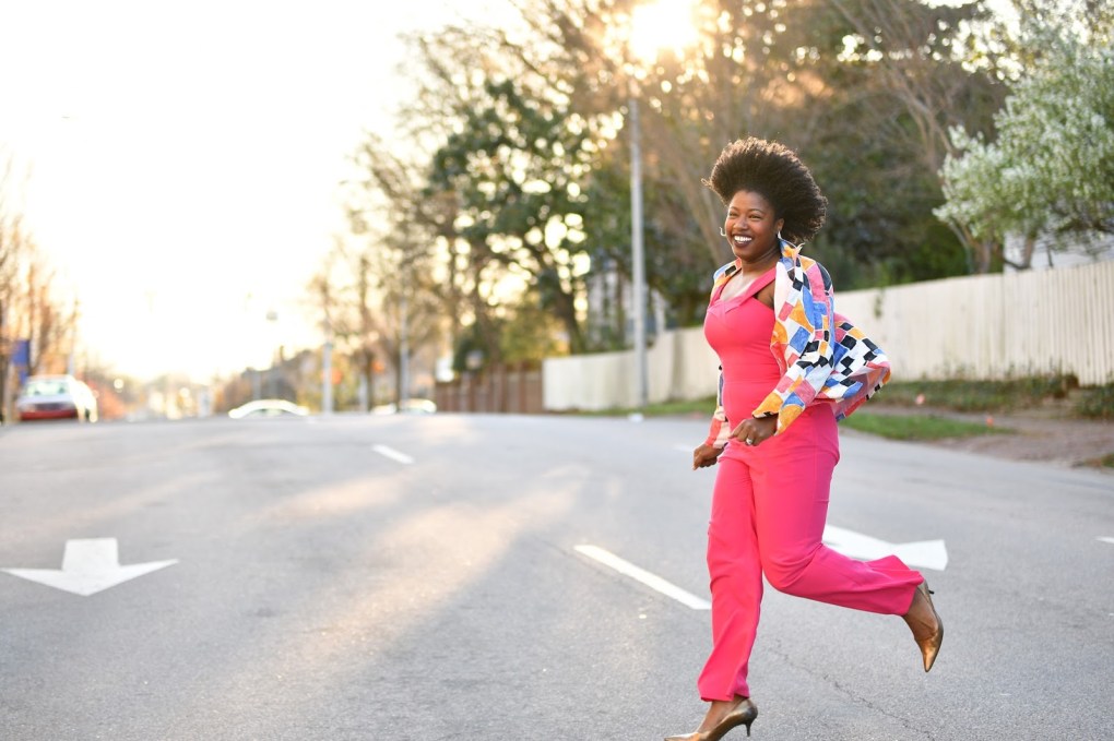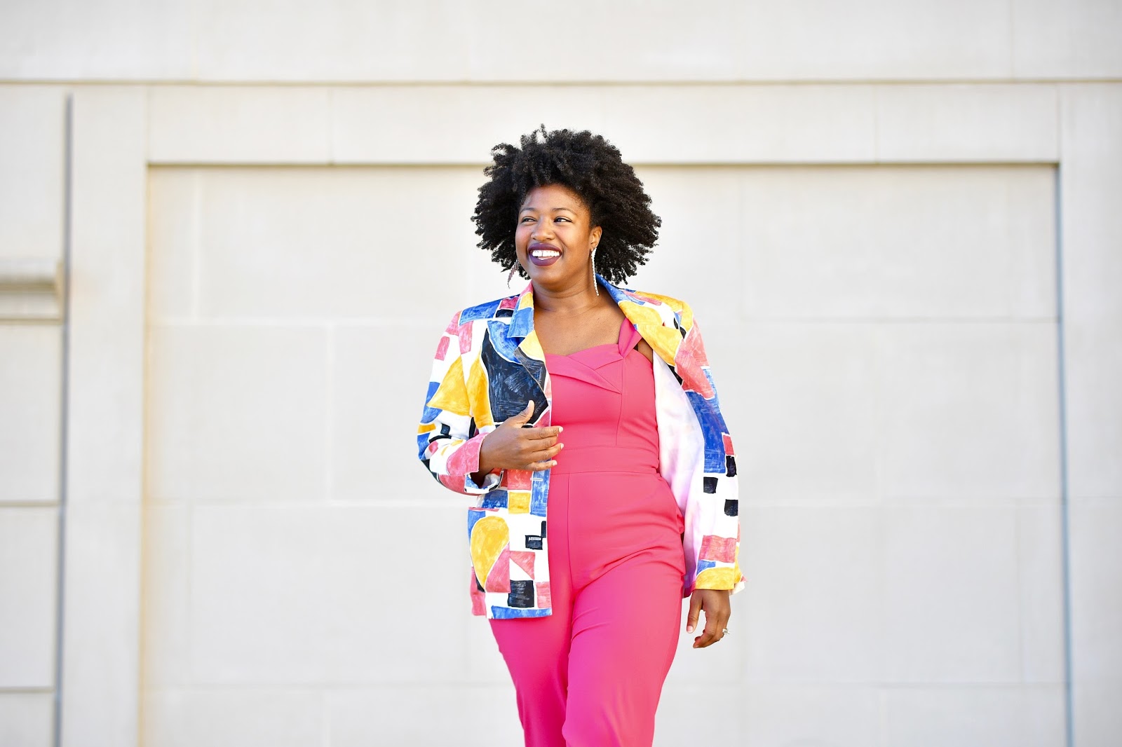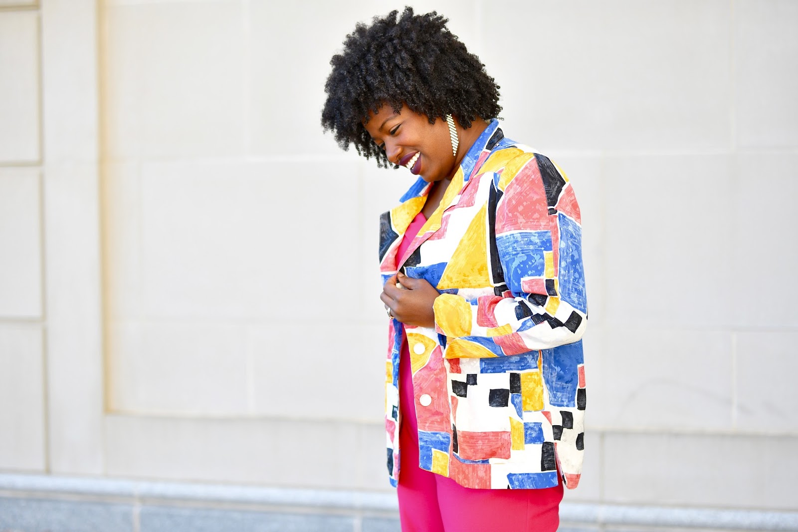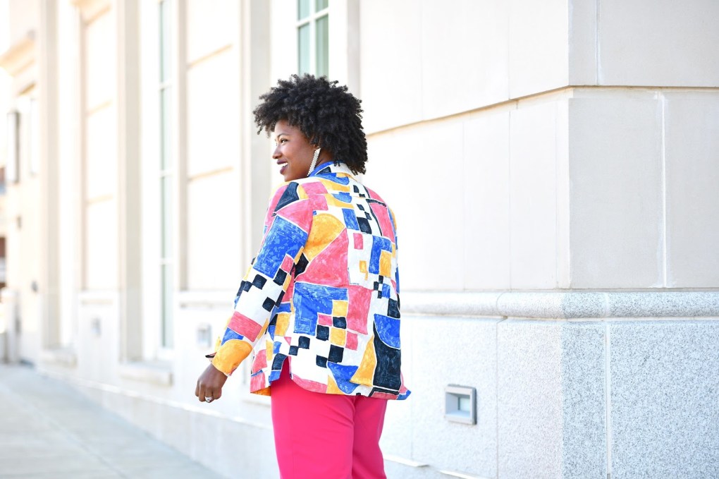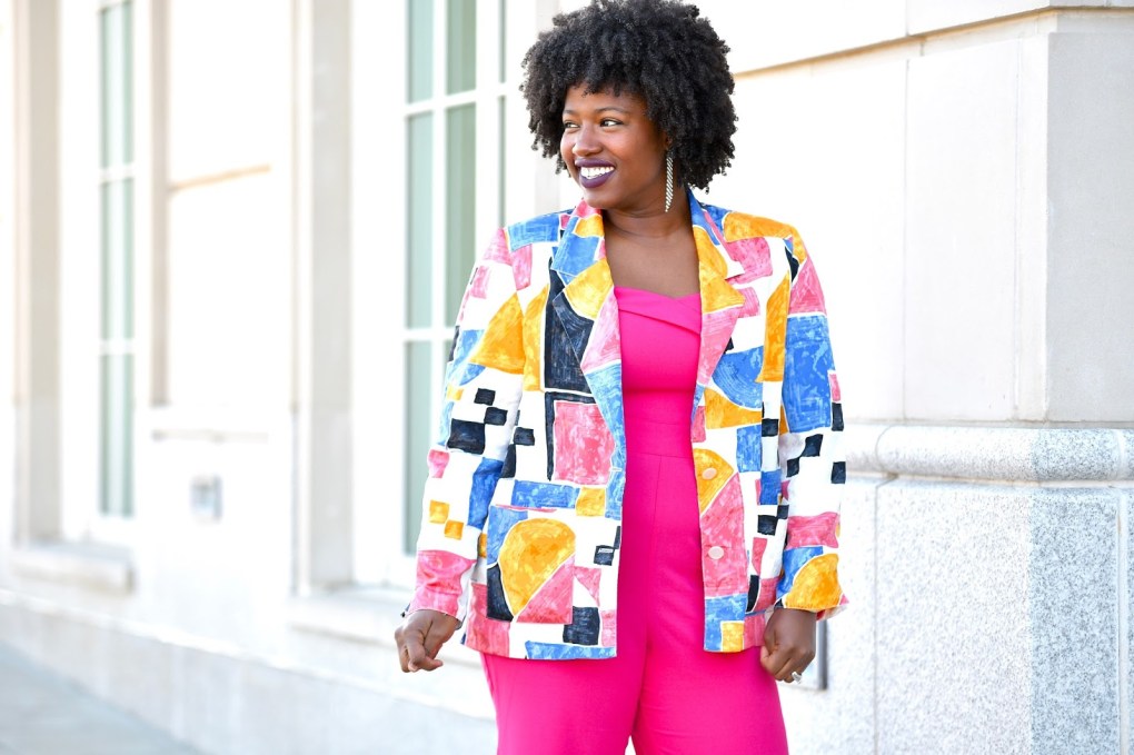 So, about this outfit. The pink jumpsuit was purchased sometime last year from the new Gabrielle Union clothing line at New York and Company. I am such a sucker for a jumpsuit and even more of a sucker for a jumpsuit in a neon bright color. If this is your first time reading the CCC blog, then you couldn’t possibly know that I’m completely obsessed with bright colors, prints and anything vintage or thrift. I work hard to bring color to my content and hope that it brings happiness to your day. My blazer was purchased from a vintage shop called vtijkandi.com I found them while scrolling through post on Instagram. I’ve purchased several items from this shop and they never go wrong. All items are reasonably priced and they have $5 deals! Can’t beat that, huh? If you’re ever in the mood to buy a funky printed blazer or top, check them out at the website link above or check them out on Instagram at @vintijkandi.