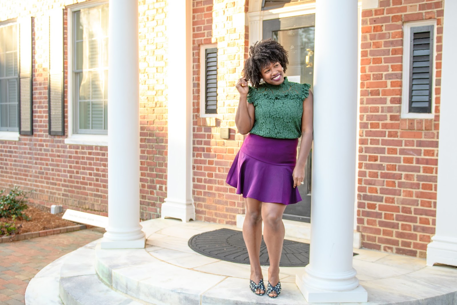 I’m the queen of layering and when it’s time to transition I simply layer with collared shirts and light weight sweater vest. Another way to layer and not burn up when the weather changes is to wear a cute skirt and light weight hose.