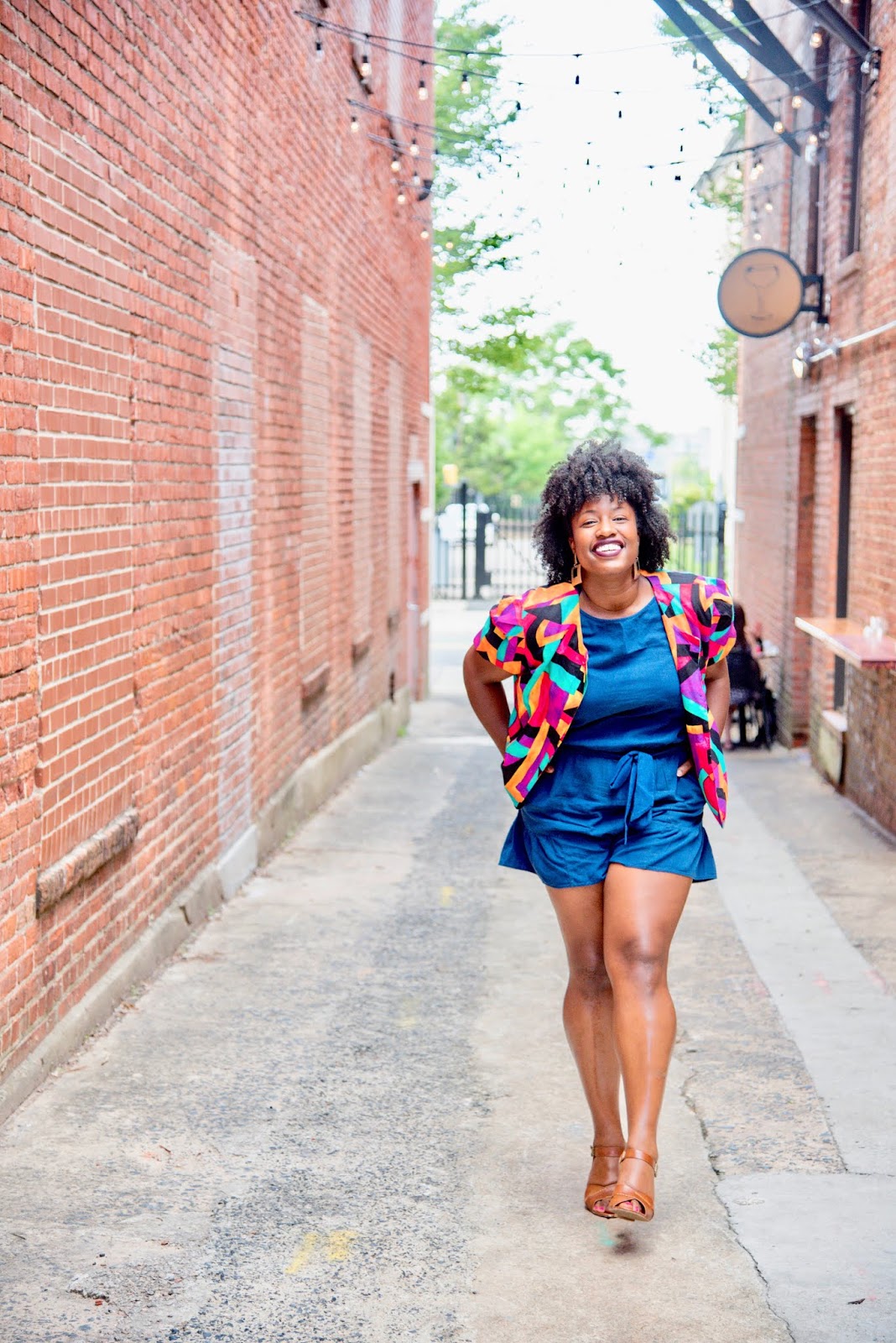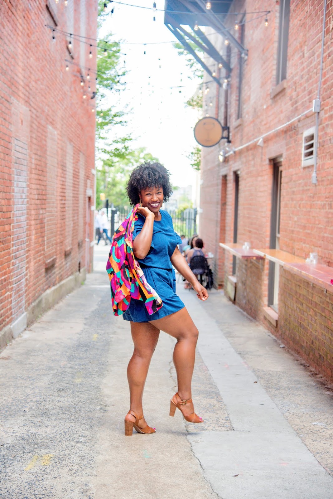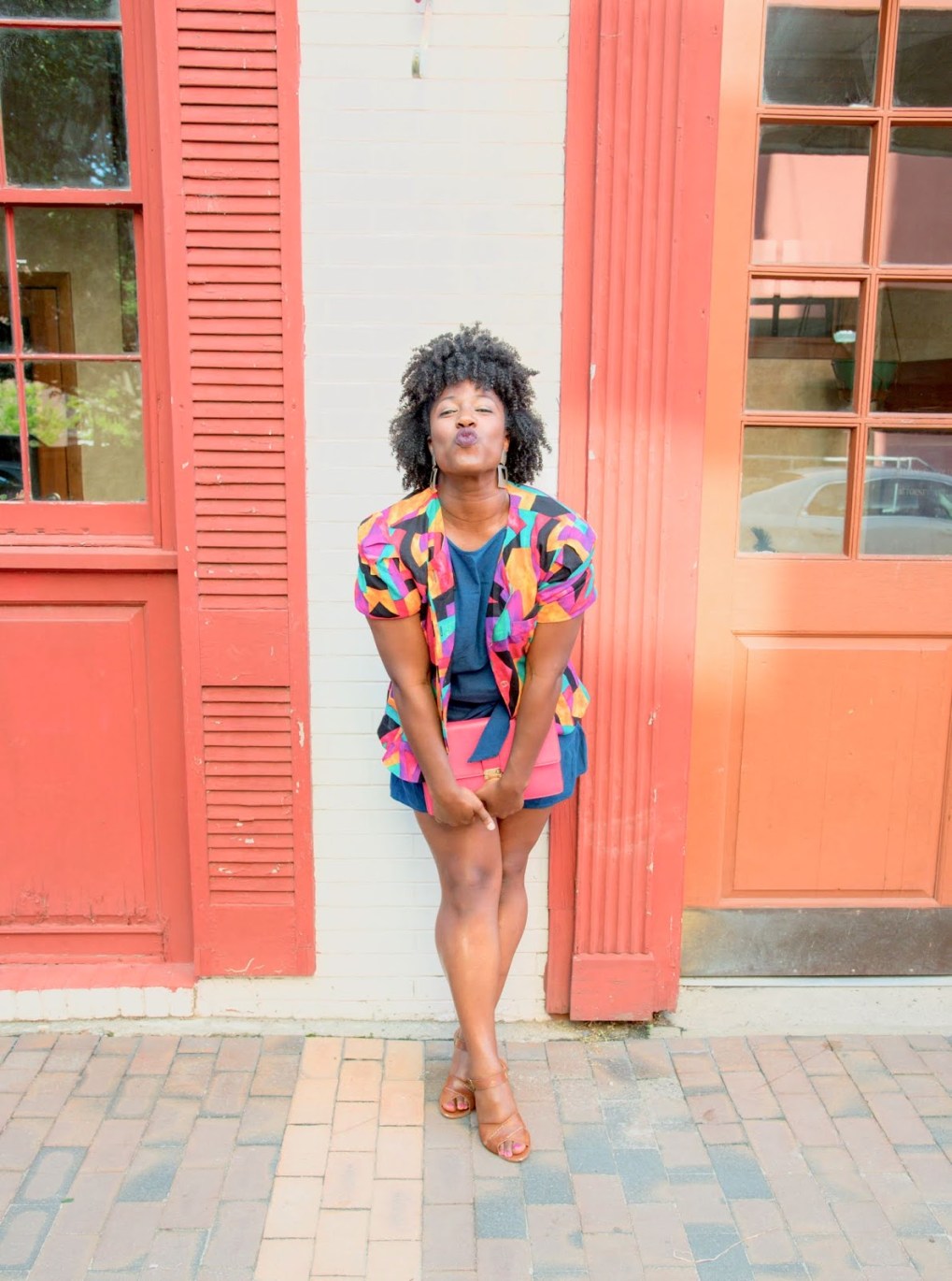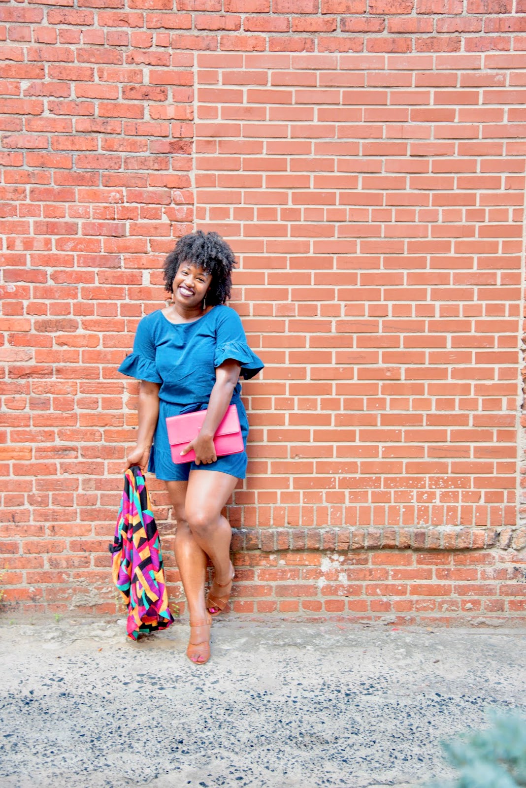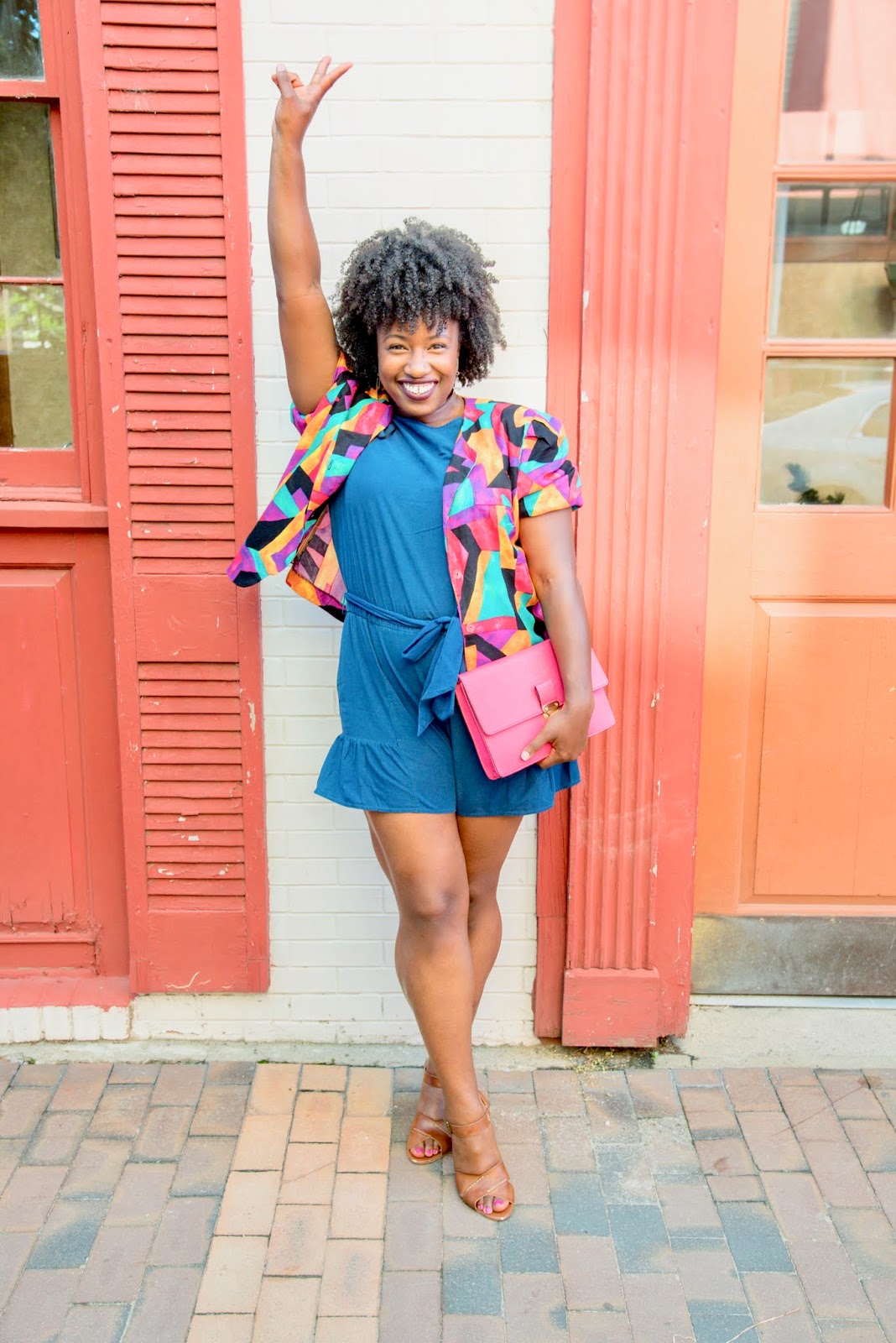 So, you guys know how I am about my rompers. Once summer hits I go romper crazy. The one I’m rocking in this pic is of course, from American Eagle. Here’s the link if you’re interested in purchasing this cute simple ruffled number. I’ve really enjoyed this romper because it literally goes with everything in my closet. When in doubt, wear denim. The little blazer I’ve layered with my romper is a vintage find from the Instagram page