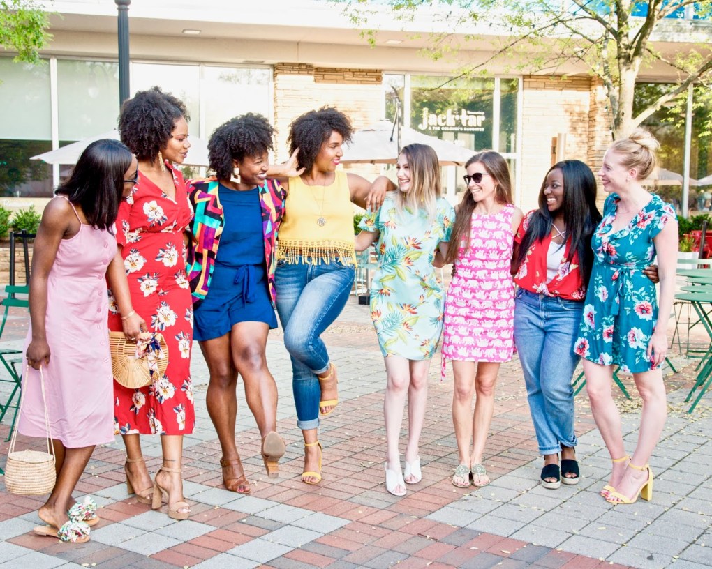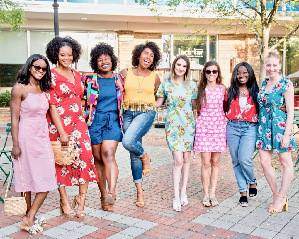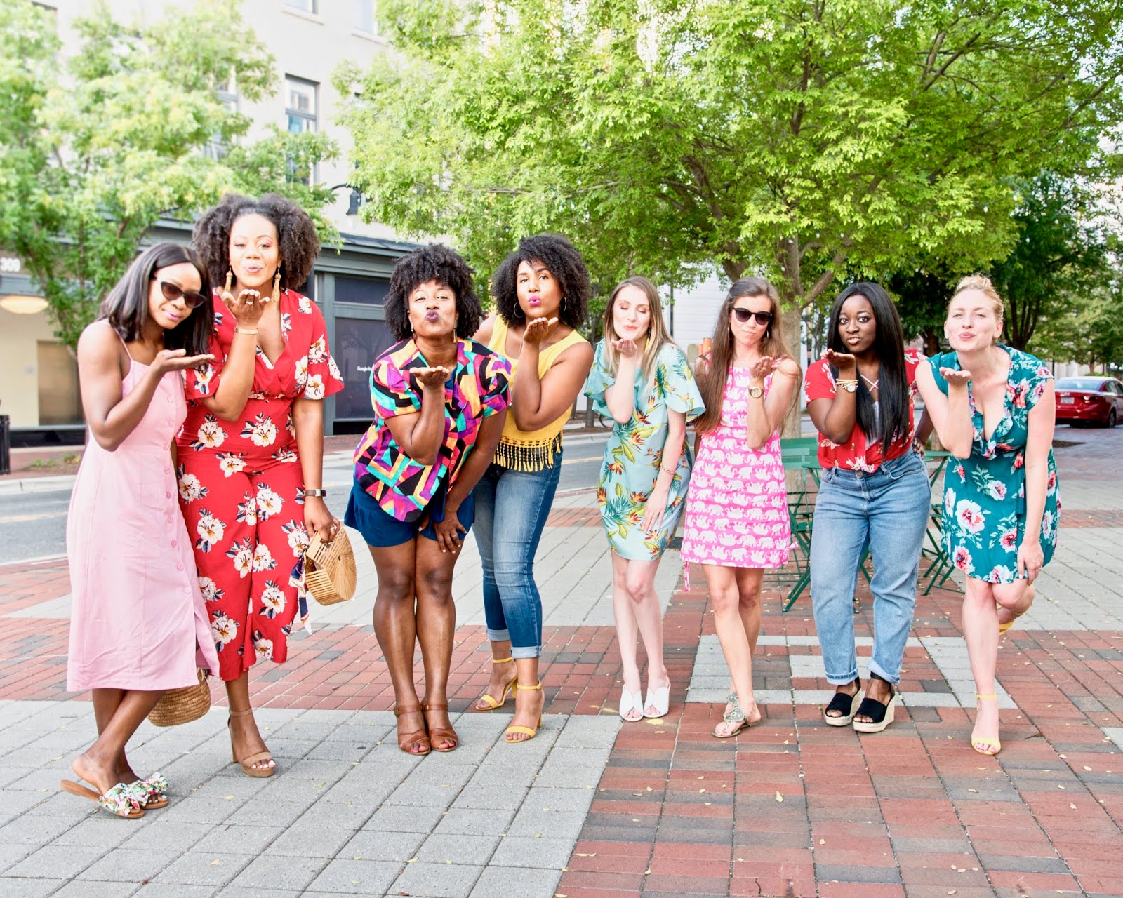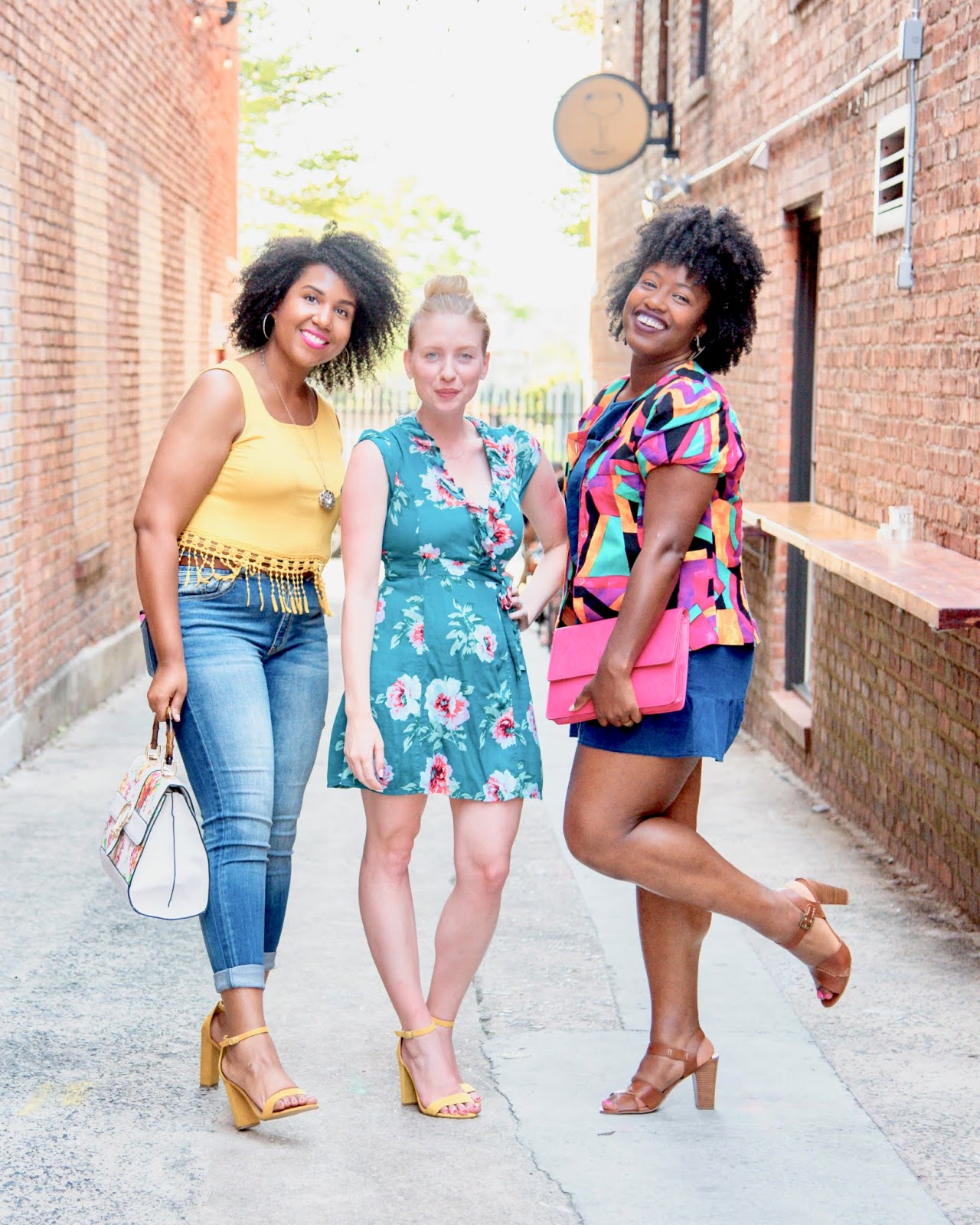 So….clearly I didn’t get the yellow block heel memo. Don’t these ladies look absolutely fab! The tall curly-haired Courtney is a ball of fun. You have to check her out on insta @_cocorenee and the beautiful blonde in that cute floral dress is Erica. She is sweet as pie and her Instagram page @istylediy gives me so much life!
