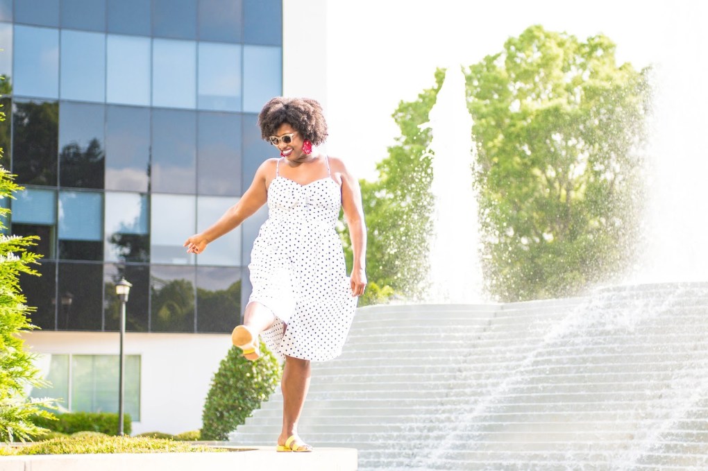 I know you just love these pictures of me pretending there is a beach in sight, LOL. We are literally almost in July and I have yet to see a beach so when in beachless, found the nearest water attraction and take pics near it and pretend there is sand close by. Nah, just kidding, we were in Charlotte this past weekend and I just had to get some shots of this darling dress I grabbed on sale from Target. Today, I’ll be sharing some of the stores I’ll be shopping this summer that are not thrift. While most of shopping is thrifted shopping, every now and then I’ll buy something from an online store I like or pop in at a shopping center or mall and grab a few items that I like, so heres where I’m shopping and why, keep scrolling to the bottom for my list!