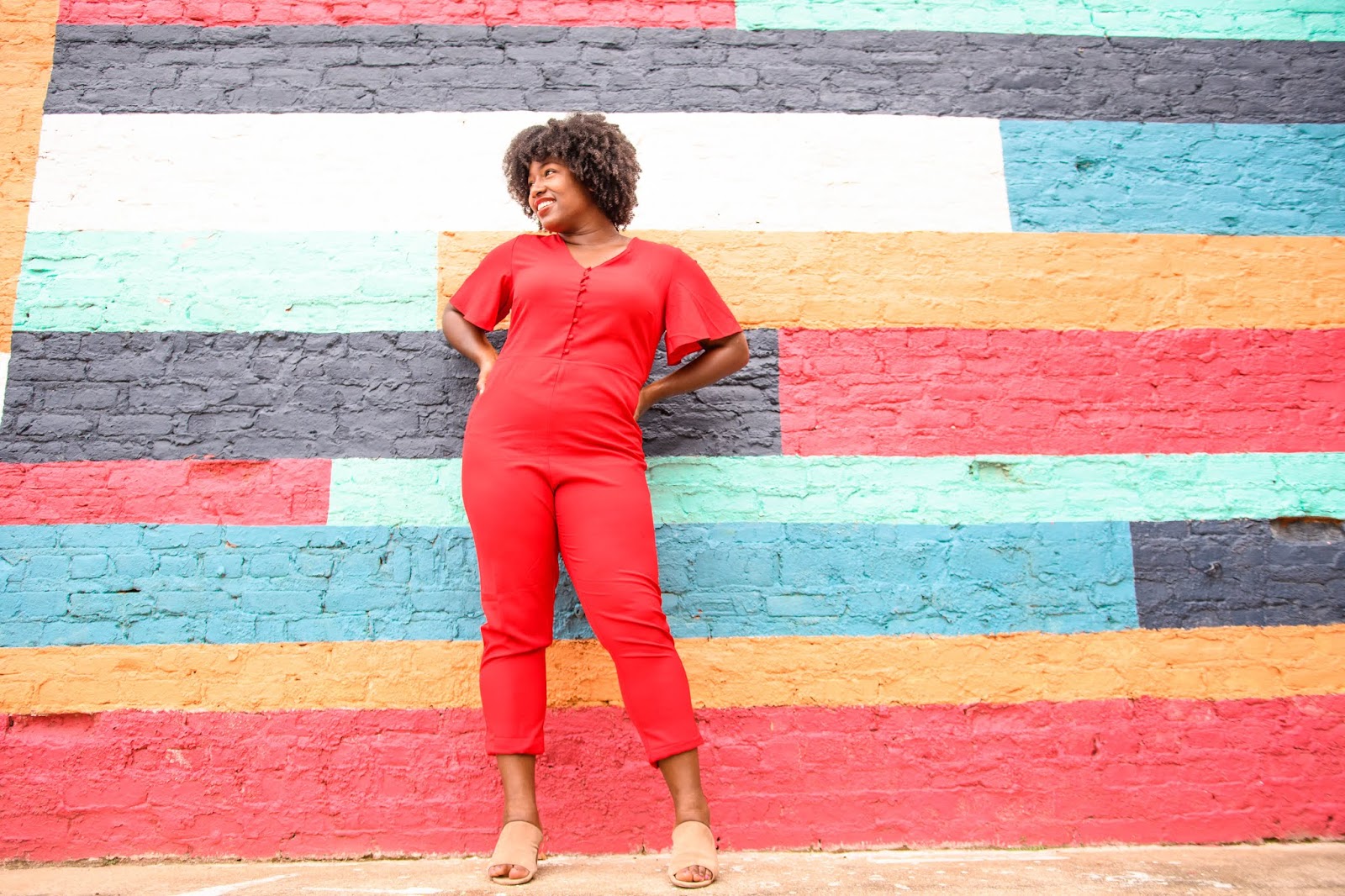 Now I’m ready to take the town by storm with fresh, dewy skin that’s hydrated and protected. The only thing that could possibly make everything feel complete is a fly outfit. I’ve been shopping ASOS lately and came across this fire hot red jumpsuit which was apart of their AMAZING summer sale. They unfortunately, only had this jumpsuit available in tall, so I rolled up the legs a little and rocked it out. If you have a long torso like me, then you should be fine with a tall. Sadly, I don’t have long legs to match this long torso, so I’ll have to get these pant legs hemmed at some point but I just had to wear this for my shoot, I couldn’t help myself.