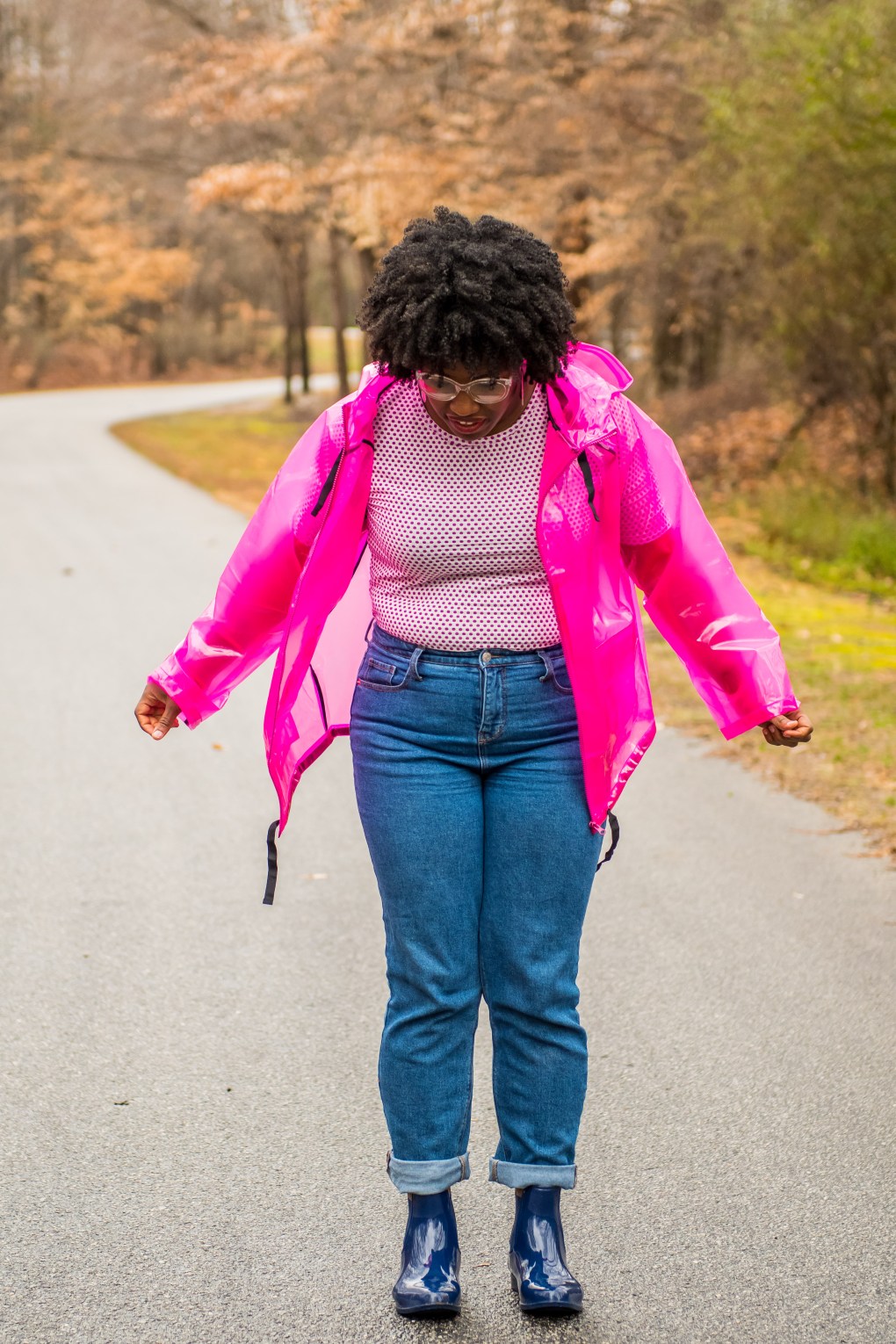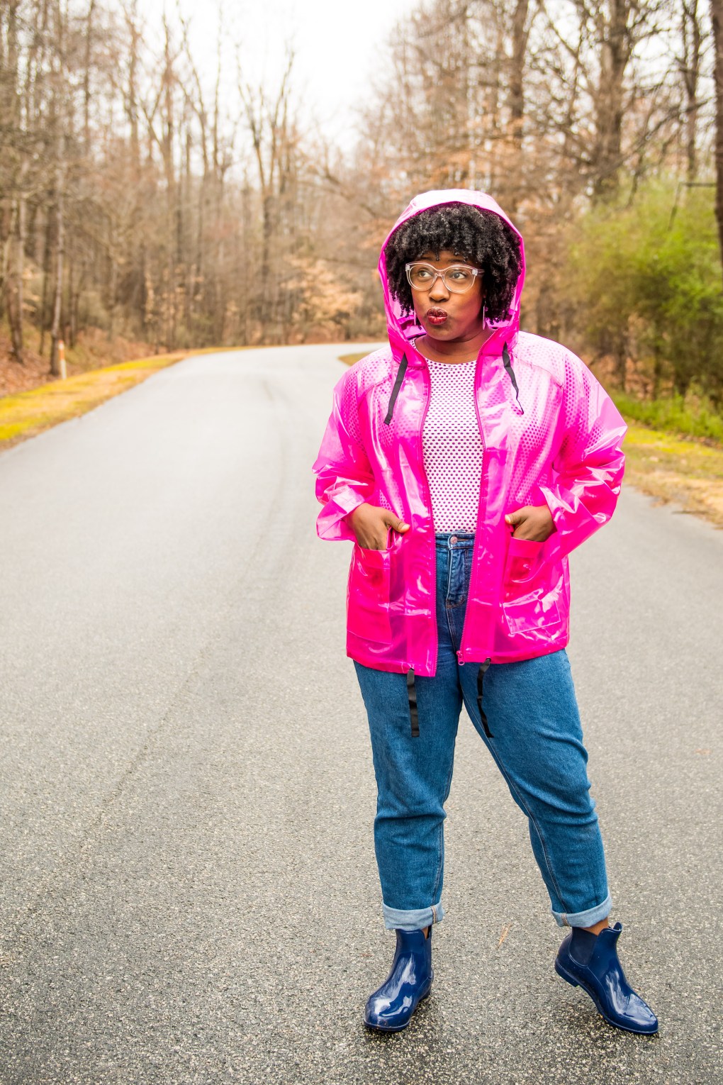 So here in NC it’s been raining just about every day this week. I’m pretty much over it at this point because I’ve run out of outfit ideas and I’m also not a fan of cold rainy days. Like I said, I like a nice 73 degrees or so. Seattle is one of those places where I’d love to live because it’s gloomy and rainy, yes, I’m weird, sue me. So a typically rainy day OOTD for me would be a fun bright rain jacket, a cute tee or blouse and my ankle length rain boots.