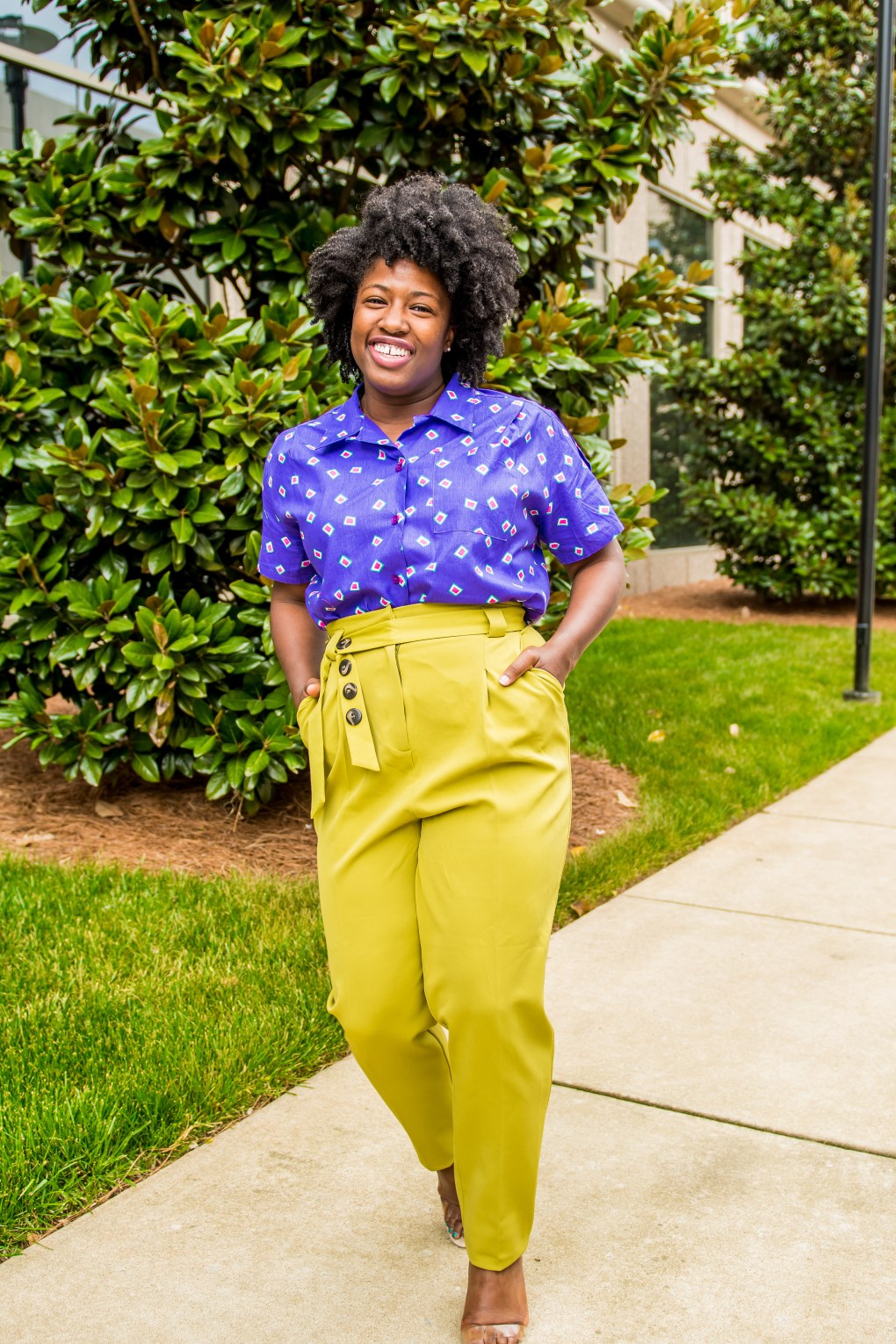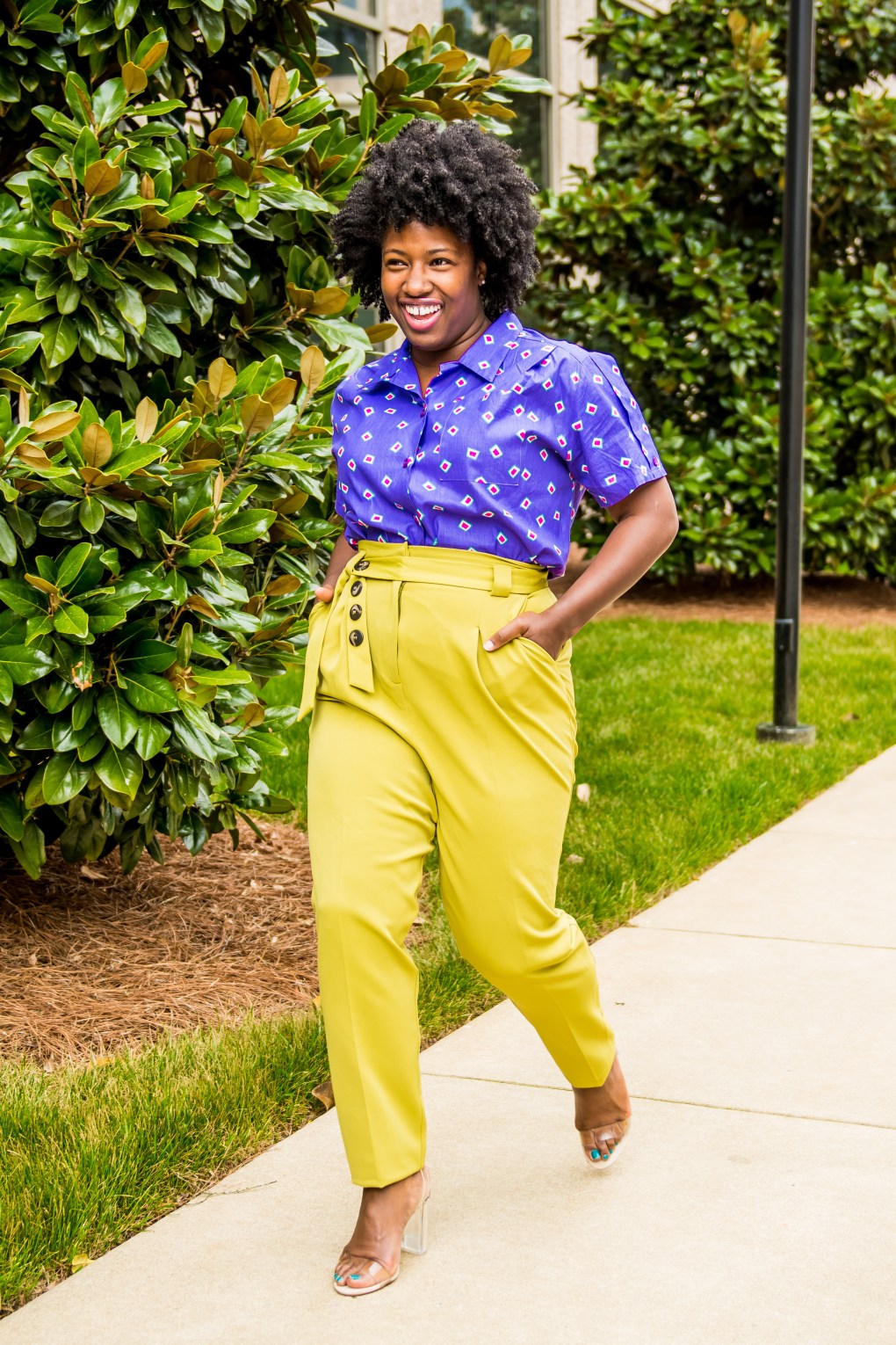 By the way, of course my lippy is by OuiFresh. It’s Love Fool. Shop this and other ultra moisturizing lipglosses here. Chartreuse pants by ASOS. They no longer sell them but keep an eye out for similar looks as they get in new stuff all the time. My dope vintage top is by The Cru Look