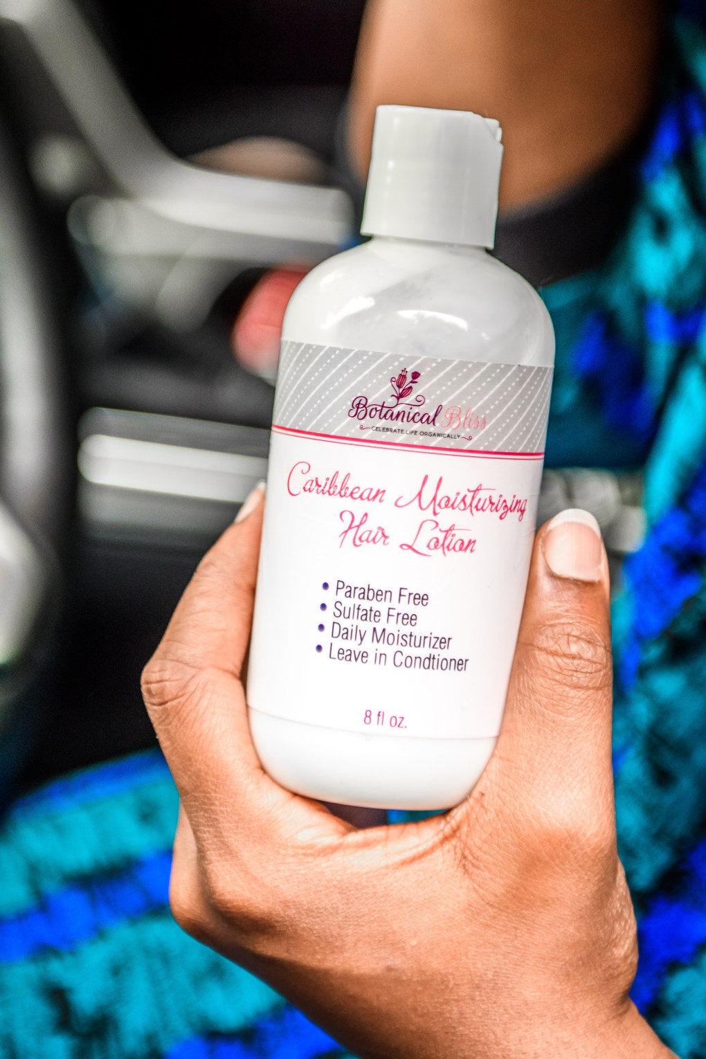 Lately, I’ve been using the Botanical Bliss Caribbean Moisturizing Hair Lotion to get me out the door. I apply it to each individual curl, mostly the front where the curls get real frizzy after a few days. With the product in my fingers, I finger coil a dime size amount to help get the curl definition back and maintain my old style.