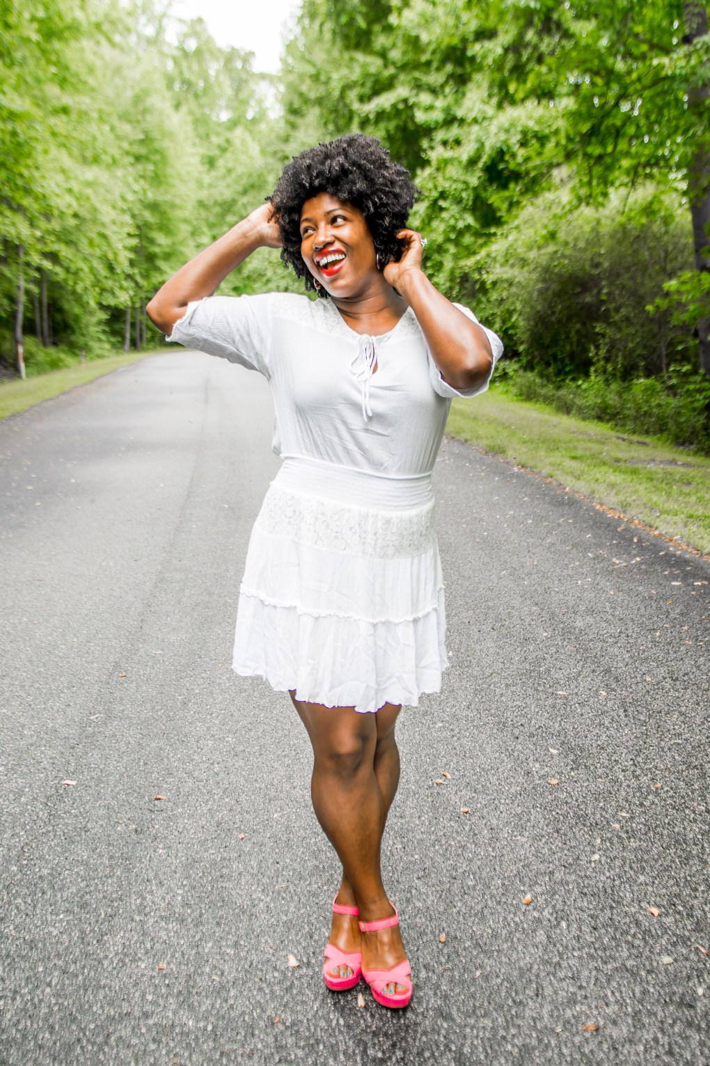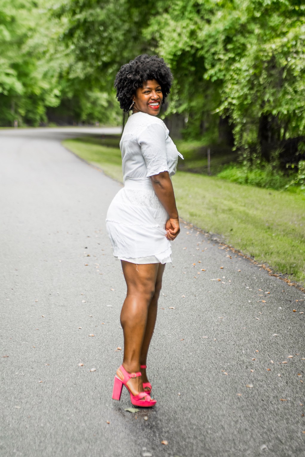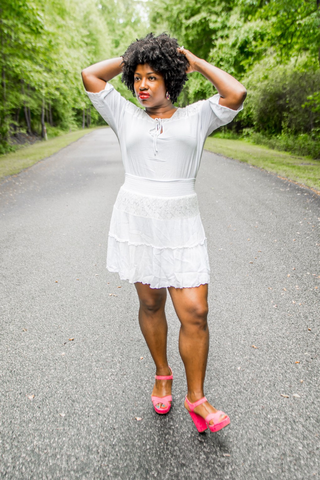 One of my favorite things about warmer weather is getting to wear little white dresses (LWD) like this. While I’ll always love my colors, a little white dress always captures my eye, particularly little white cotton dresses like the one I’m sporting in this post. I love how they flow, lay on my body all easy breezy 🙂 . I can also pretty much pair them with any shoe or accessory for the perfect summer look. When I’m feeling full on boho, I add some white jewelry and tan or brown platform shoes and when I’m feeling funky and want to incorporate my signature color love, I add a pop of color in my shoes or on my lips or with my earrings and necklaces. That’s the thing about a LWD, anyway you rock it, you really can’t go wrong. Dress it up, dress it down, it still looks oh so classy.