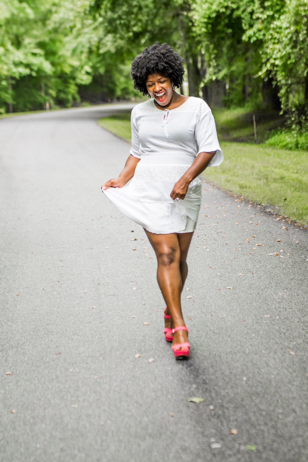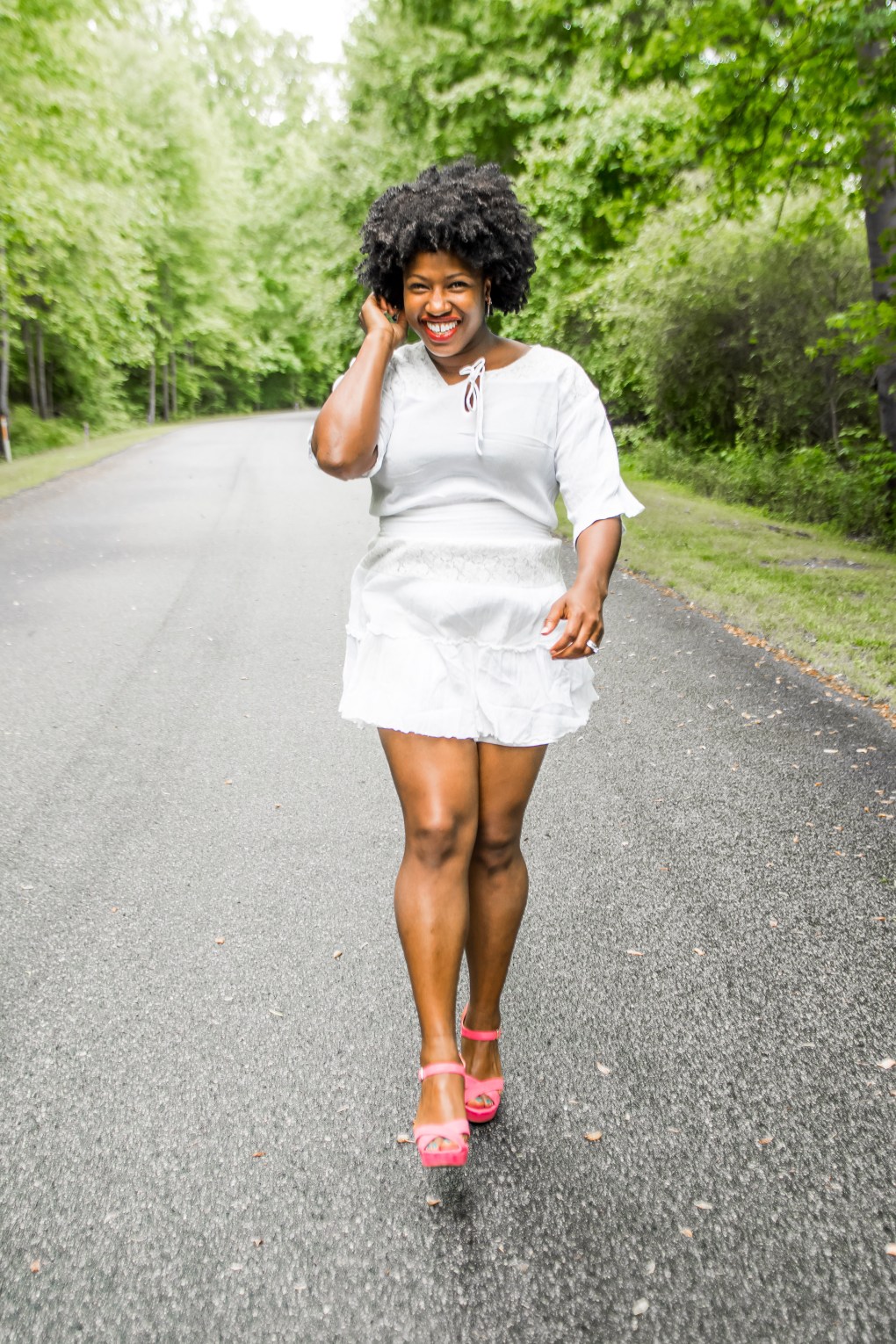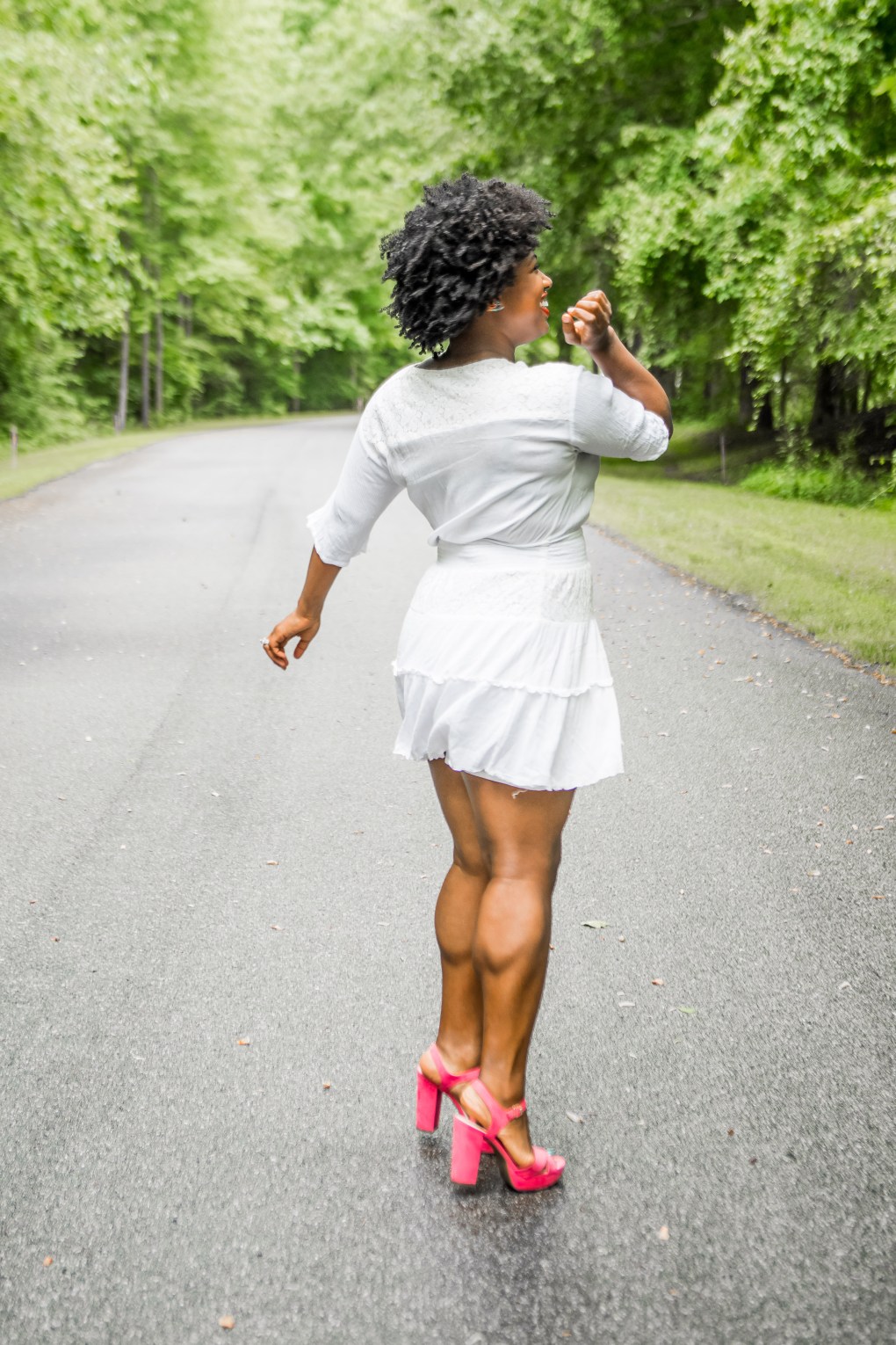 One of my favorite things about warmer weather is getting to wear little white dresses (LWD) like this. While I’ll always love my colors, a little white dress always captures my eye, particularly little white cotton dresses like the one I’m sporting in this post. I love how they flow, lay on my body all easy breezy 🙂 . I can also pretty much pair them with any shoe or accessory for the perfect summer look. When I’m feeling full on boho, I add some white jewelry and tan or brown platform shoes and when I’m feeling funky and want to incorporate my signature color love, I add a pop of color in my shoes or on my lips or with my earrings and necklaces. That’s the thing about a LWD, anyway you rock it, you really can’t go wrong. Dress it up, dress it down, it still looks oh so classy.