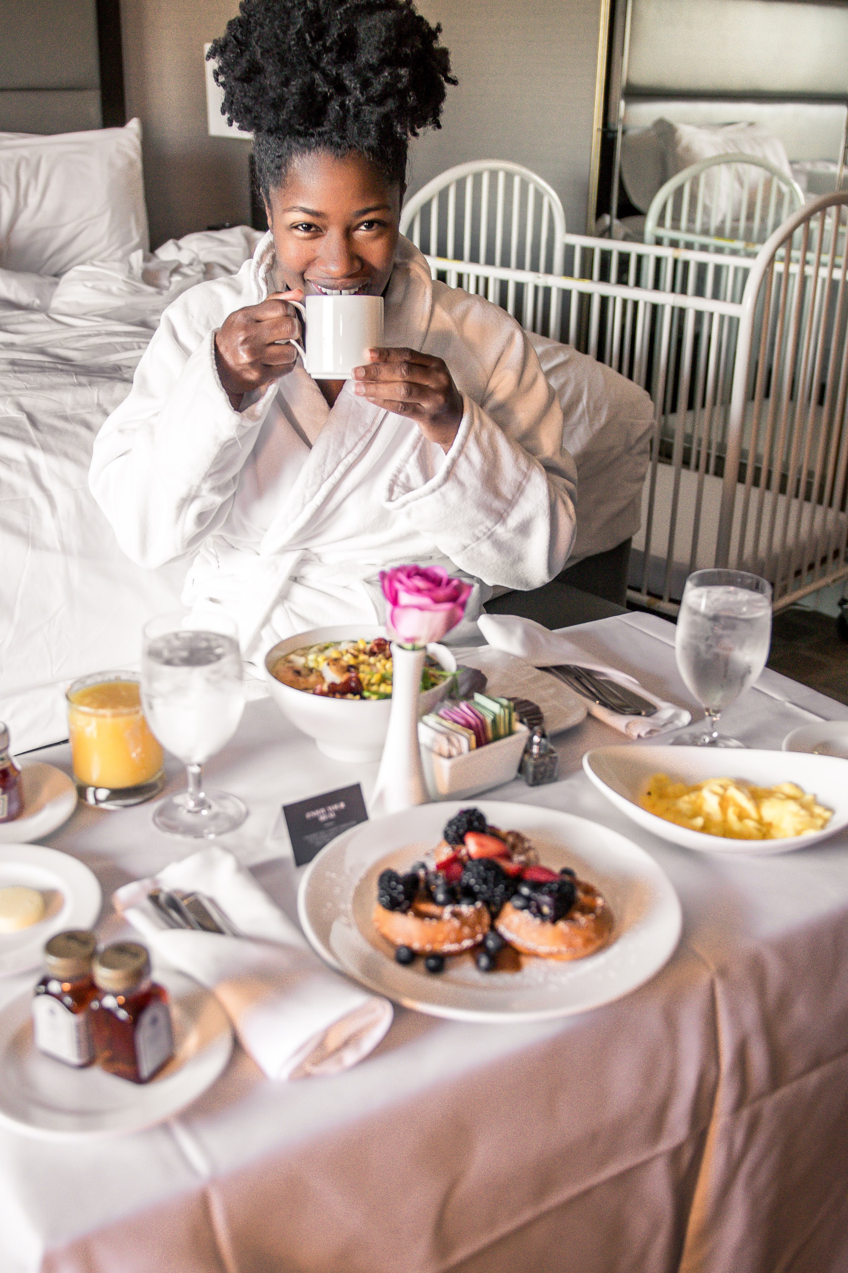 By the looks of these pictures it looks like it’s really a vacation for Charlee and that’s because it was a vacation for Charlee, LOL. One thing I’m realizing as a parent is that your happiness is really their happiness. If your kid is happy that’s really all that matters and hence you’re happy. Or maybe that’s just me. In any case, my kid was happy lounging around on a plush hotel bed for 2 days, and as a sleep deprived mom, I wasn’t complaining about it, so win win over here. Honestly, we knew what this getaway was gonna be. We had every intention on hiding away in hotel and enjoying over priced room service and binge watching whatever the heck was on television. Just getting away was the real goal and while 10 years of marriage is a big deal and should be celebrated, having the little one tag along wasn’t so bad. She basically slept the whole time anyway. I don’t think she had a clue we were in a different place, let alone a different city. I mean, at her age, the only thing she really cares about is a dry diaper and a warm bottle, oh the joys of being a baby, not a care in the world, LOL. 😂