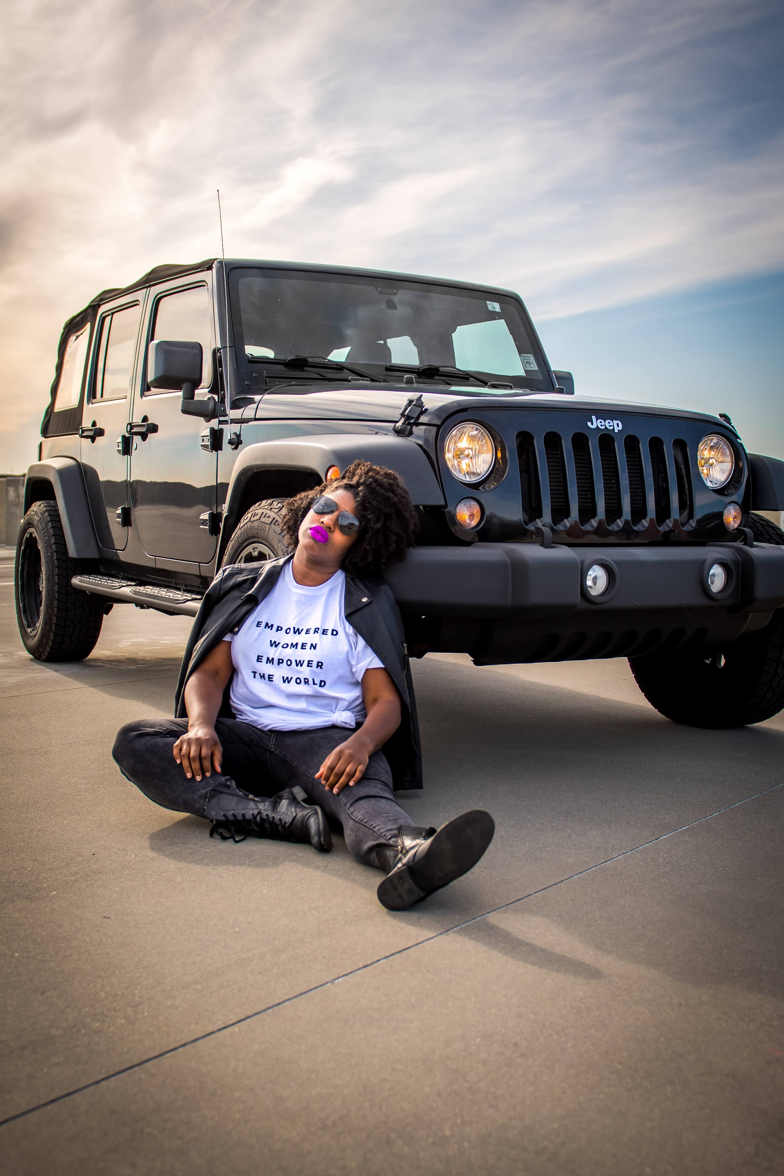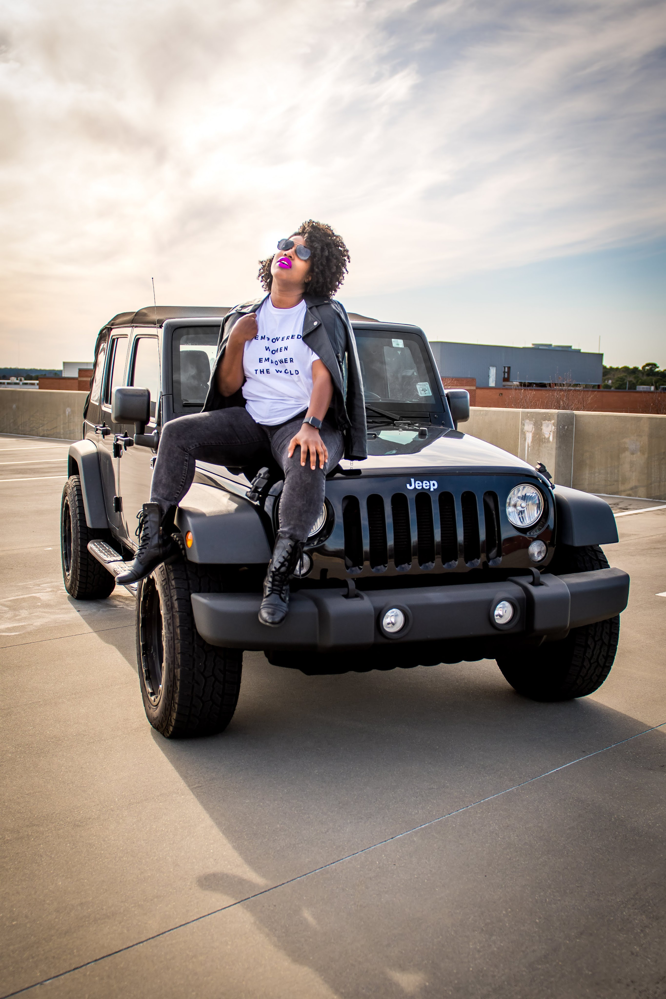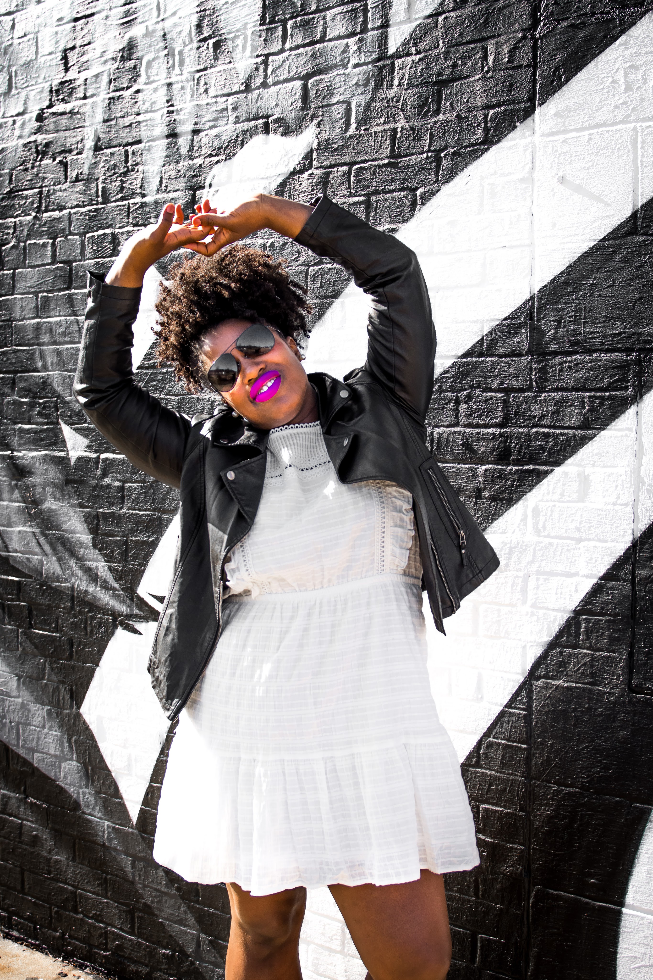 This is definitely my favorite way to style a leather jacket. Mixing the dainty vibes of a white prairie dress with the hard core vibes of a black leather jacket then adding a punk feel with vintage black leather boots is a whole mood. Also, this is a great way to easily transition into your spring wardrobe. It also helps to add a pop of color to your lips to really drive the point home that you’re so ready for spring!