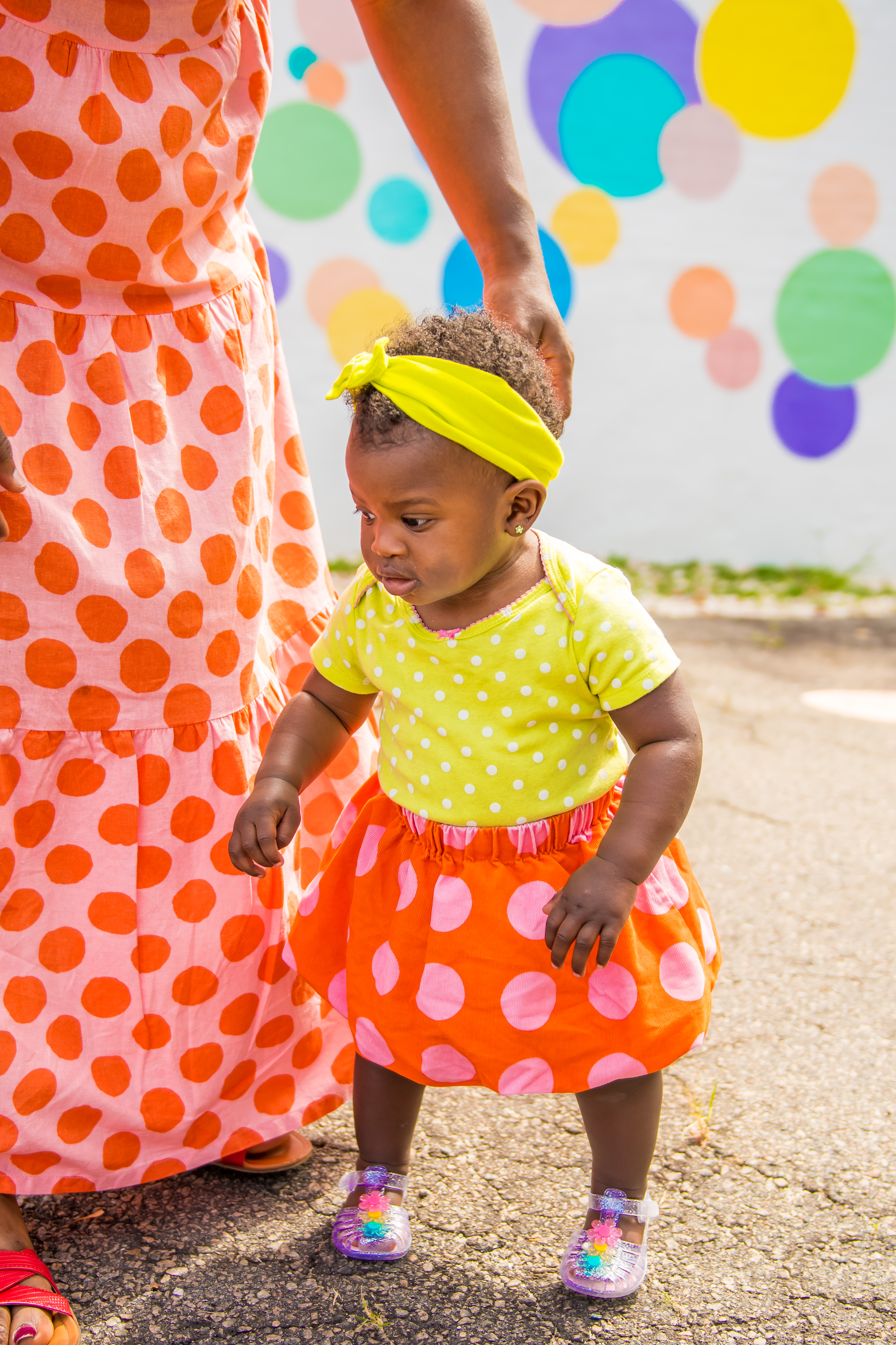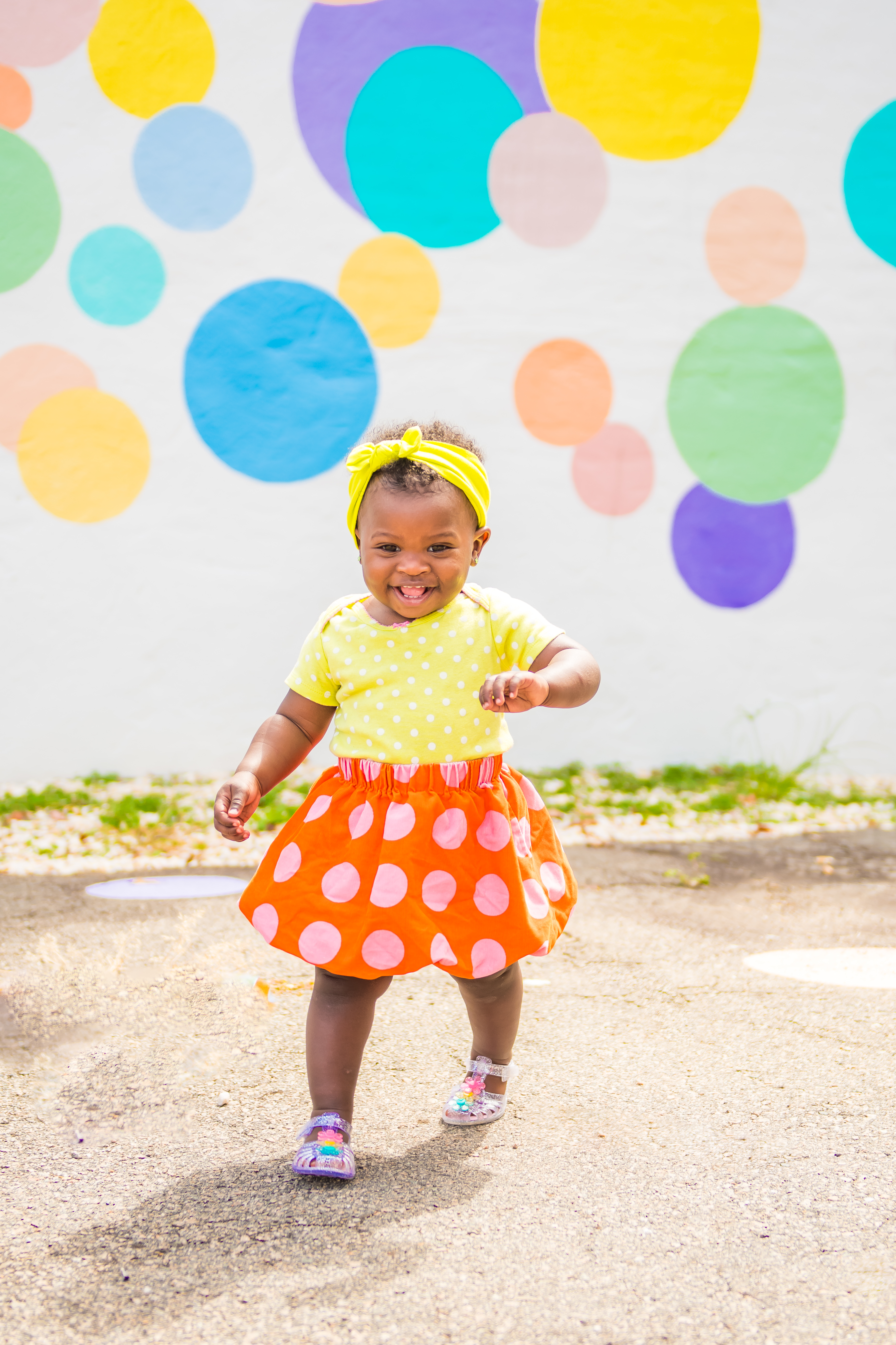 Sometimes, the best shots are the ones you catch off guard. This polka dot shoot was mostly a liter of candid shots, because Charlee just started walking, she looks down at her feet most of the time. I just embrace that and try to capture pictures of her enjoying this new found skill of hers. Most of the time, Charlee has no clue what’s going on when we are shooting, she just wants to explore the new location and the shots we often capture of her enjoying the new space are always the most enjoyable for me to edit and share with family and friends.
