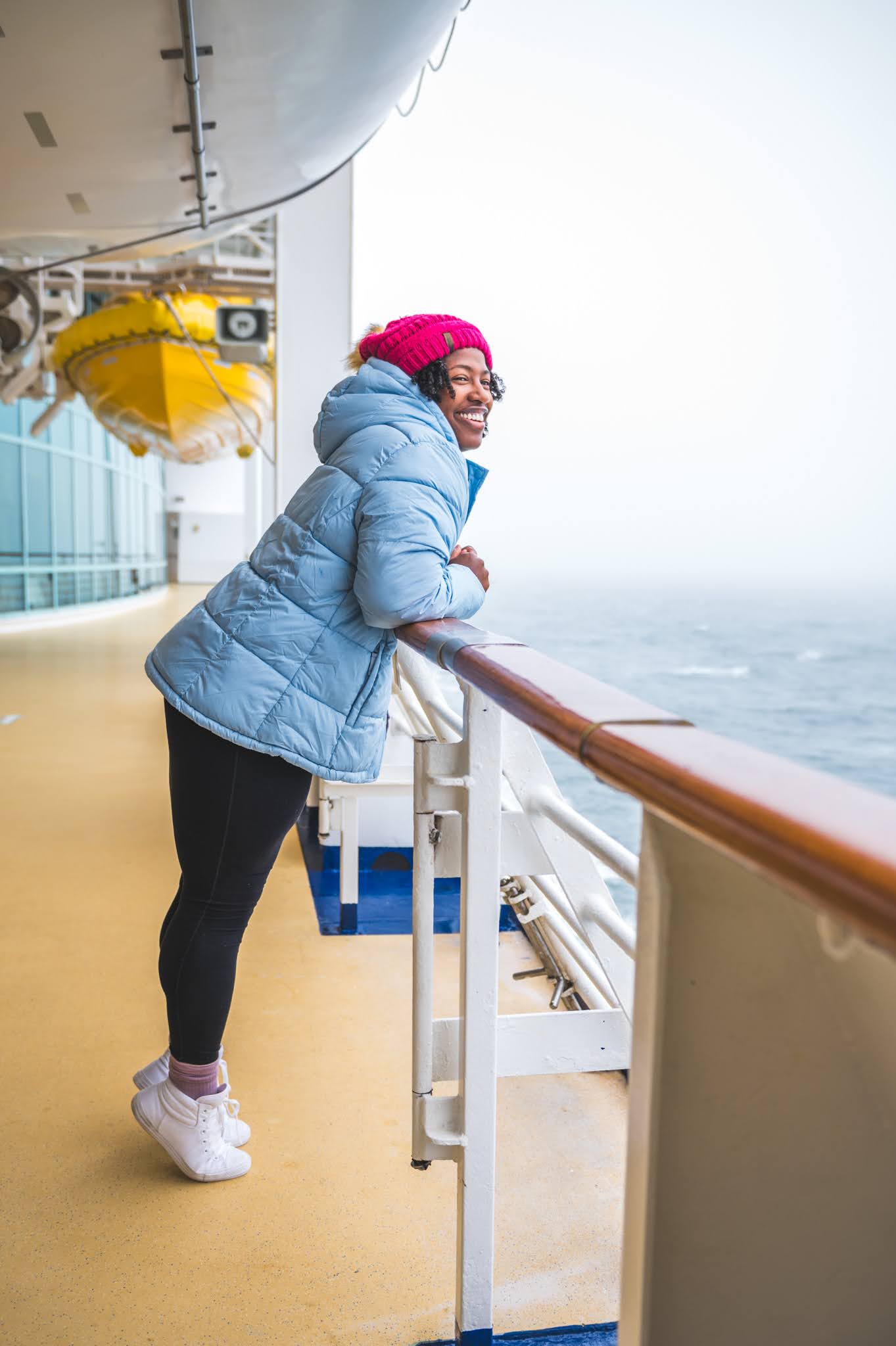 Look, if you’re cruising to Alaska in the summer, just know that the weather is different depending on where you go so just make life easy on yourself and pack layers. Why layers? Well, you can always take layers off if it gets too hot. In the words of my husband “It’s better to have it and not need it, than to need it and not have it” In other words if you pack a variety of things you need, you should be good. All that said, I followed a pretty simple formula that made packing for this trip a breeze. Pack short sleeve shirts for each day, long sleeved shirts as your base layer, a medium weight puffer jacket or vest, medium to thick leggings or hiking pants, hat/beanie, sunglasses and a lightweight raincoat. We went to Alaska in July and I can say with full confidence, I used everything I packed except for the gloves. At night, on the ship, it’s cold. If you’re cruising to the glaciers, it’ll be really cold, so the puffer jacket will come in handy, all the other layers are great for excursion days. Below are few links to things I bought and packed for the cruise to get you started: