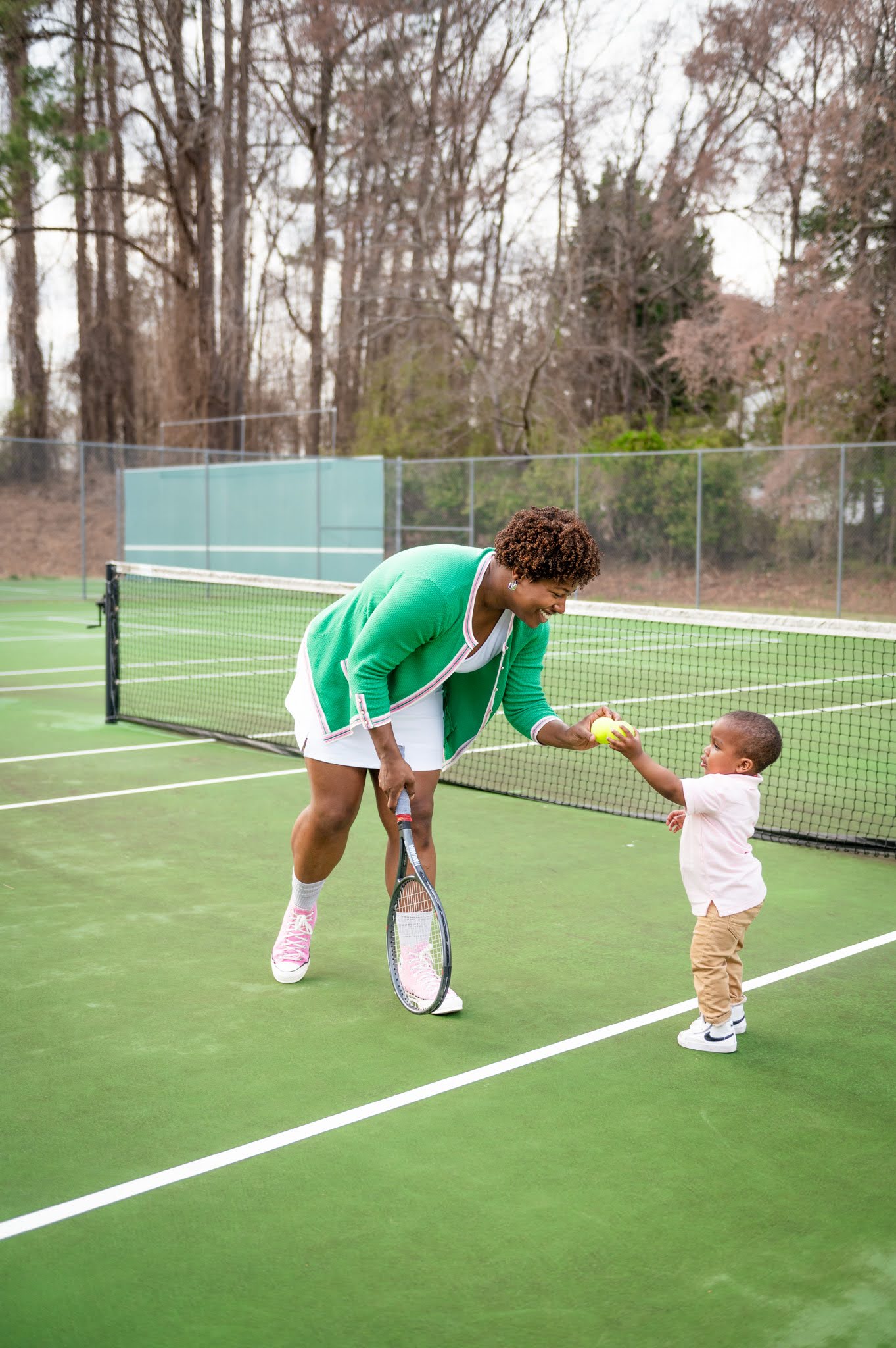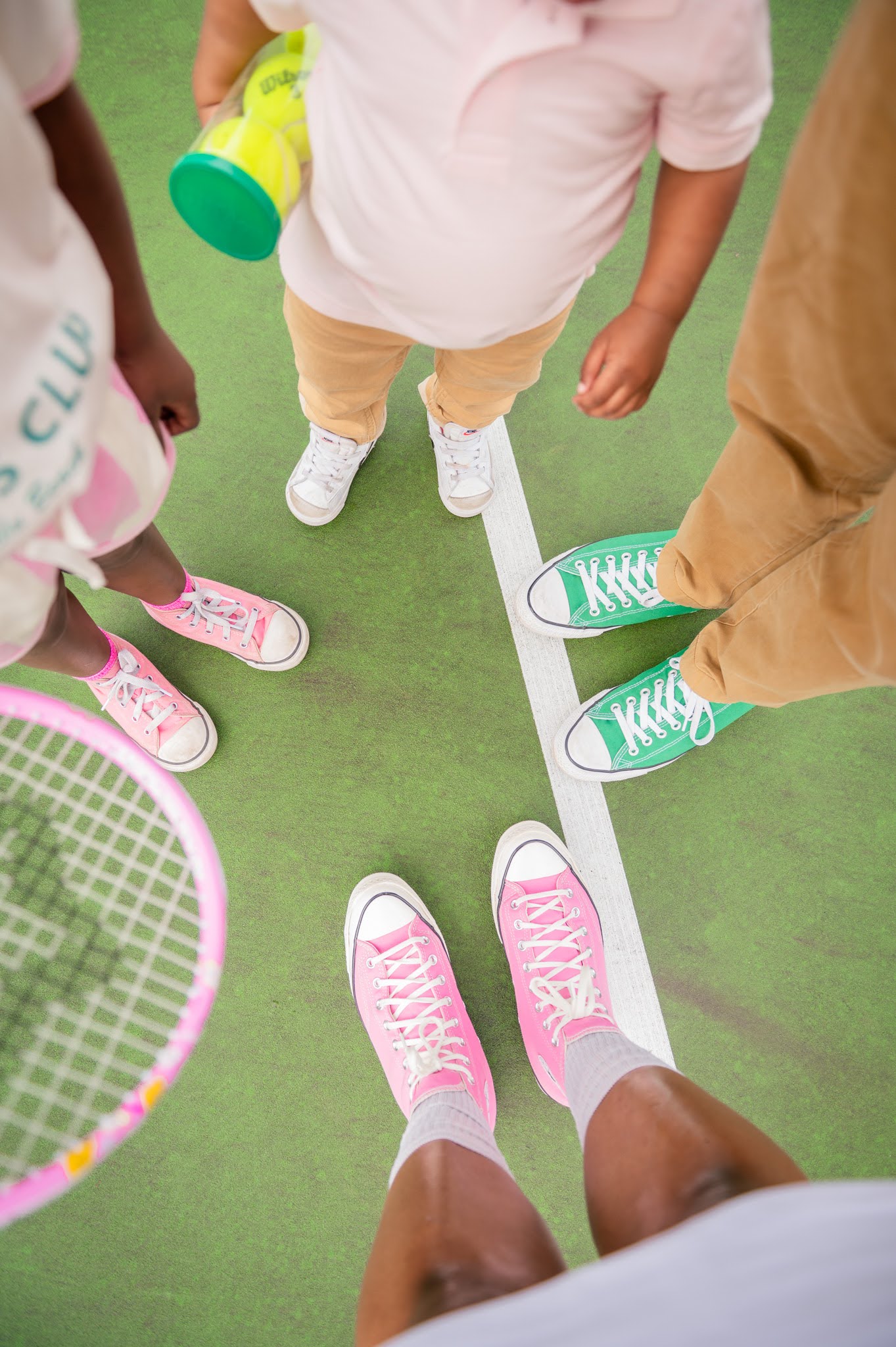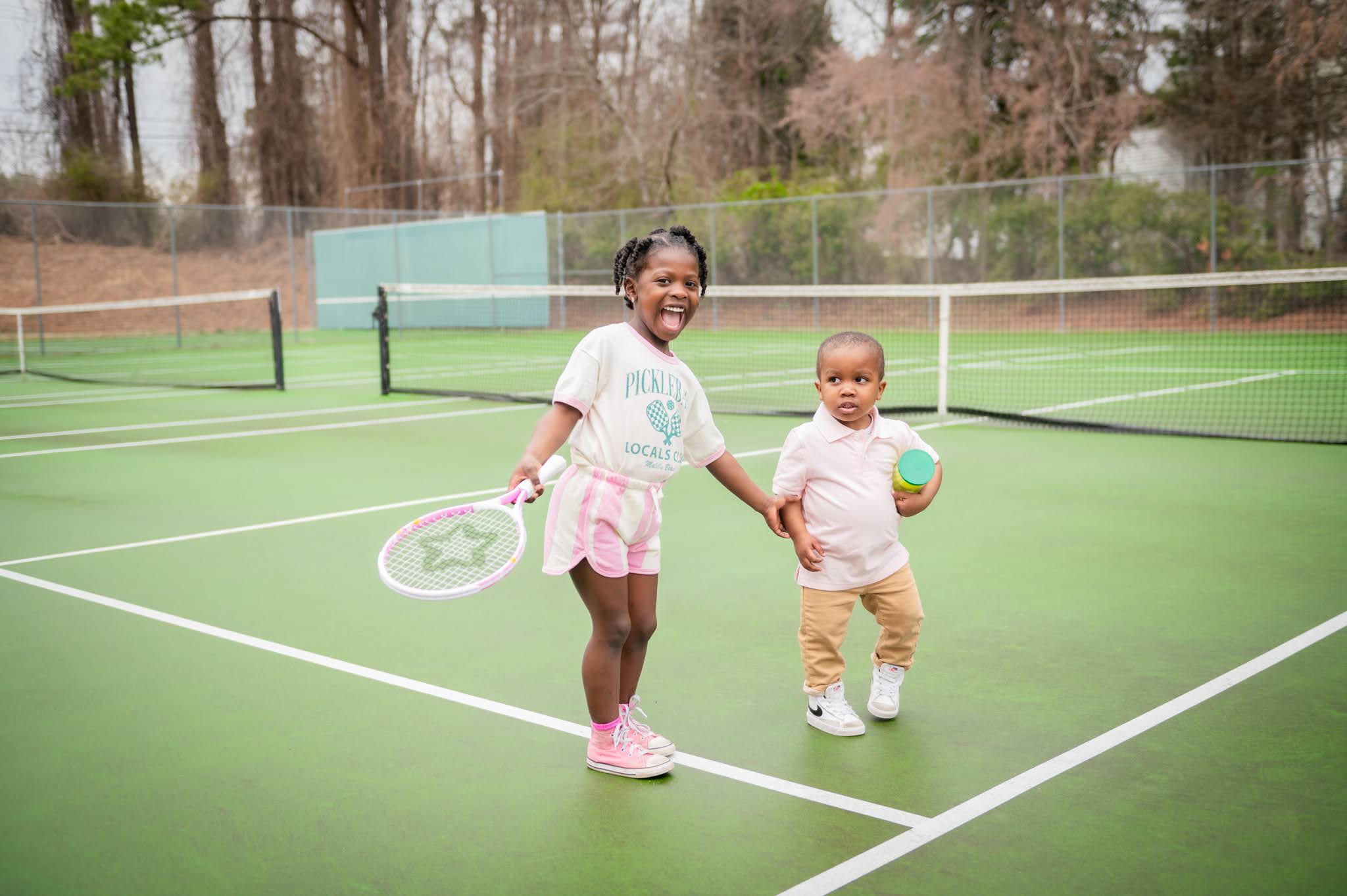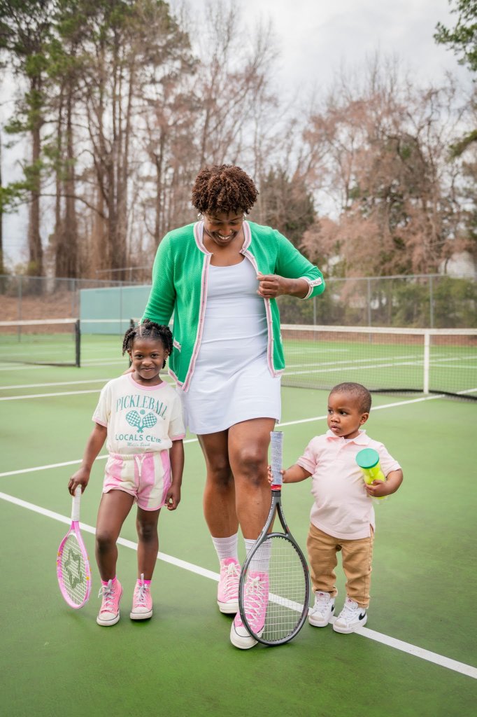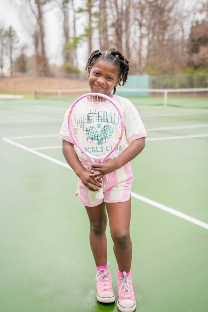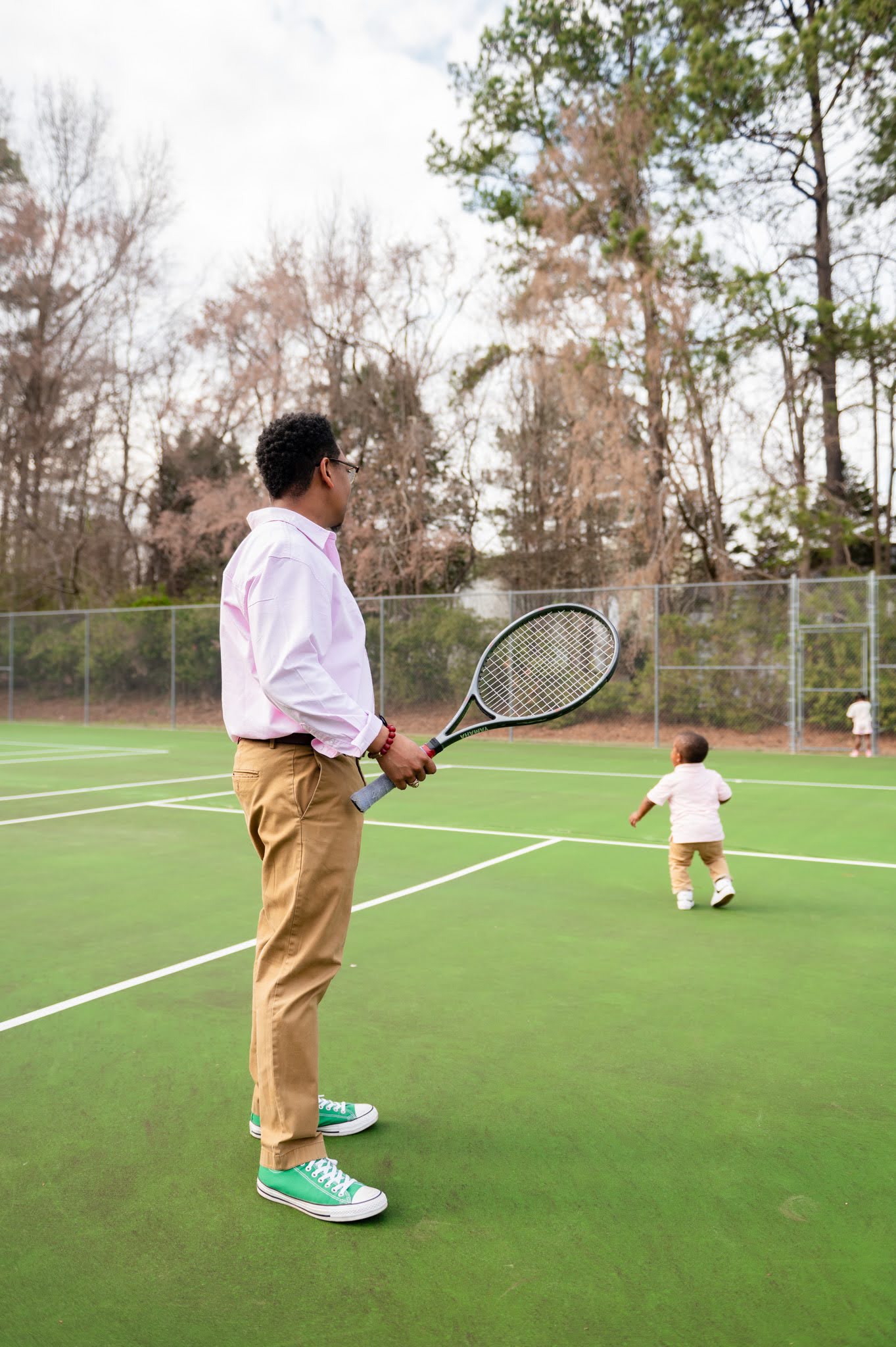 Charles and I are photographers. If you’ve been following along for awhile, then you know we’ve been shooting clients since around 2015. Business has slowed down since having kids. We typically shoot around 5-10 clients per year. We also take on a handful of brand shoots when the time allows. Since Charlee was born, we’ve taken quarterly family photos using a tripod. This year, I let Charlee pick the family photos theme. She’s a bit obsessed with tennis and pickleball right now. She loves pink, so that’s what she went with this time around.