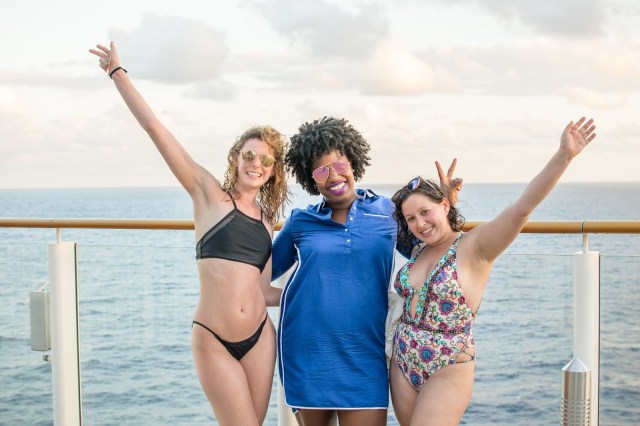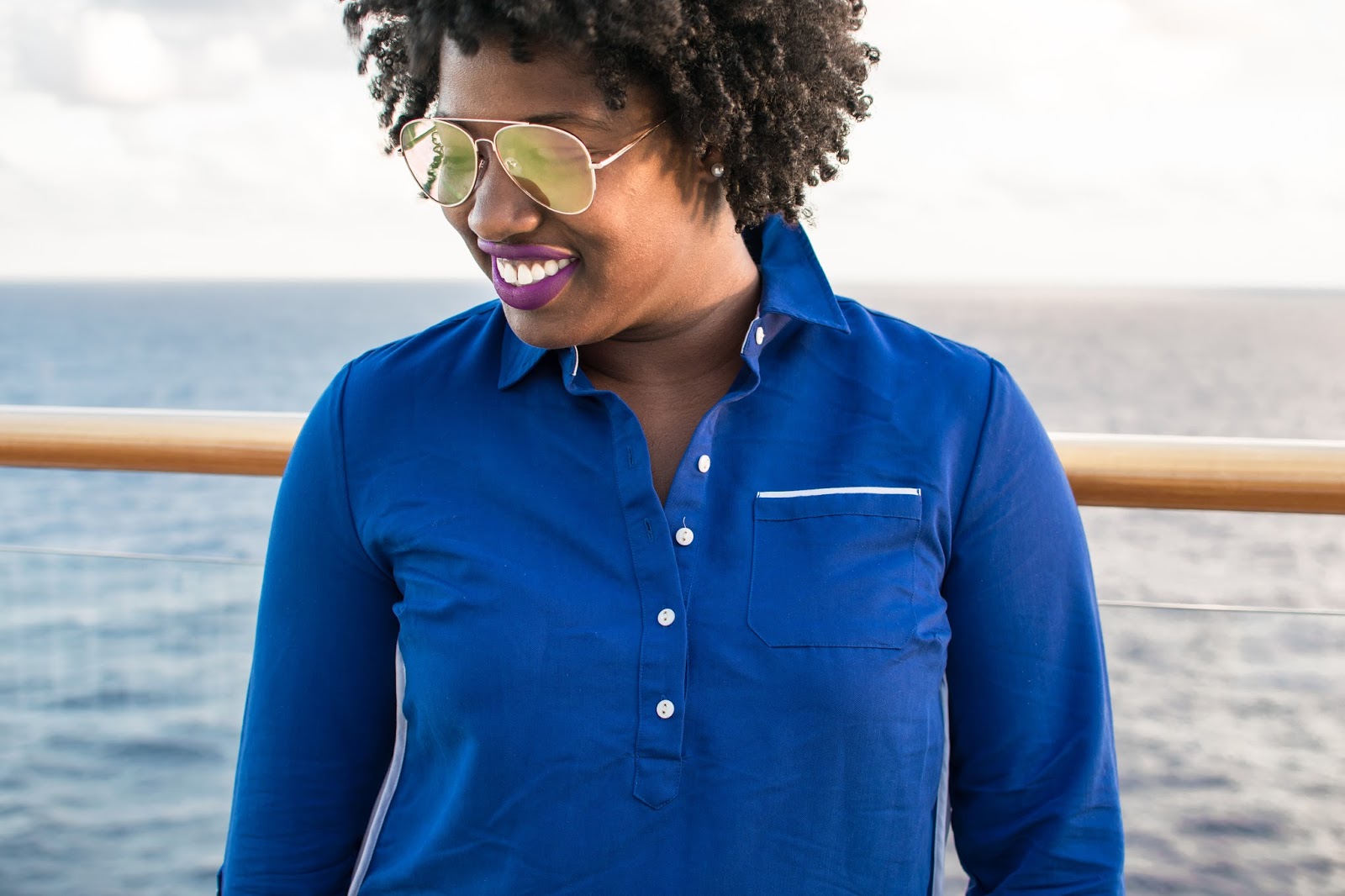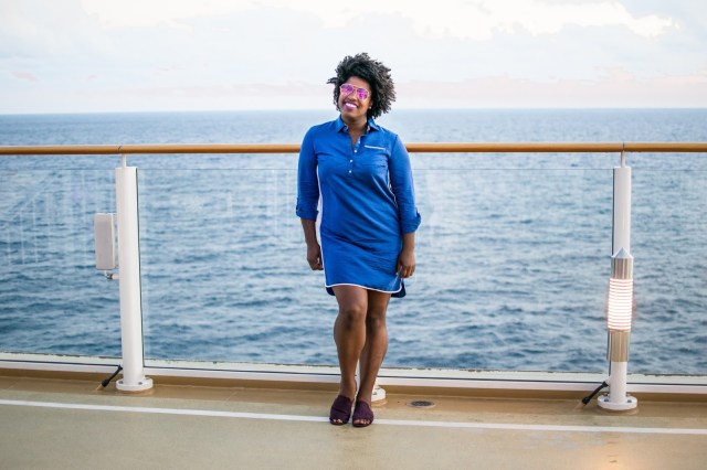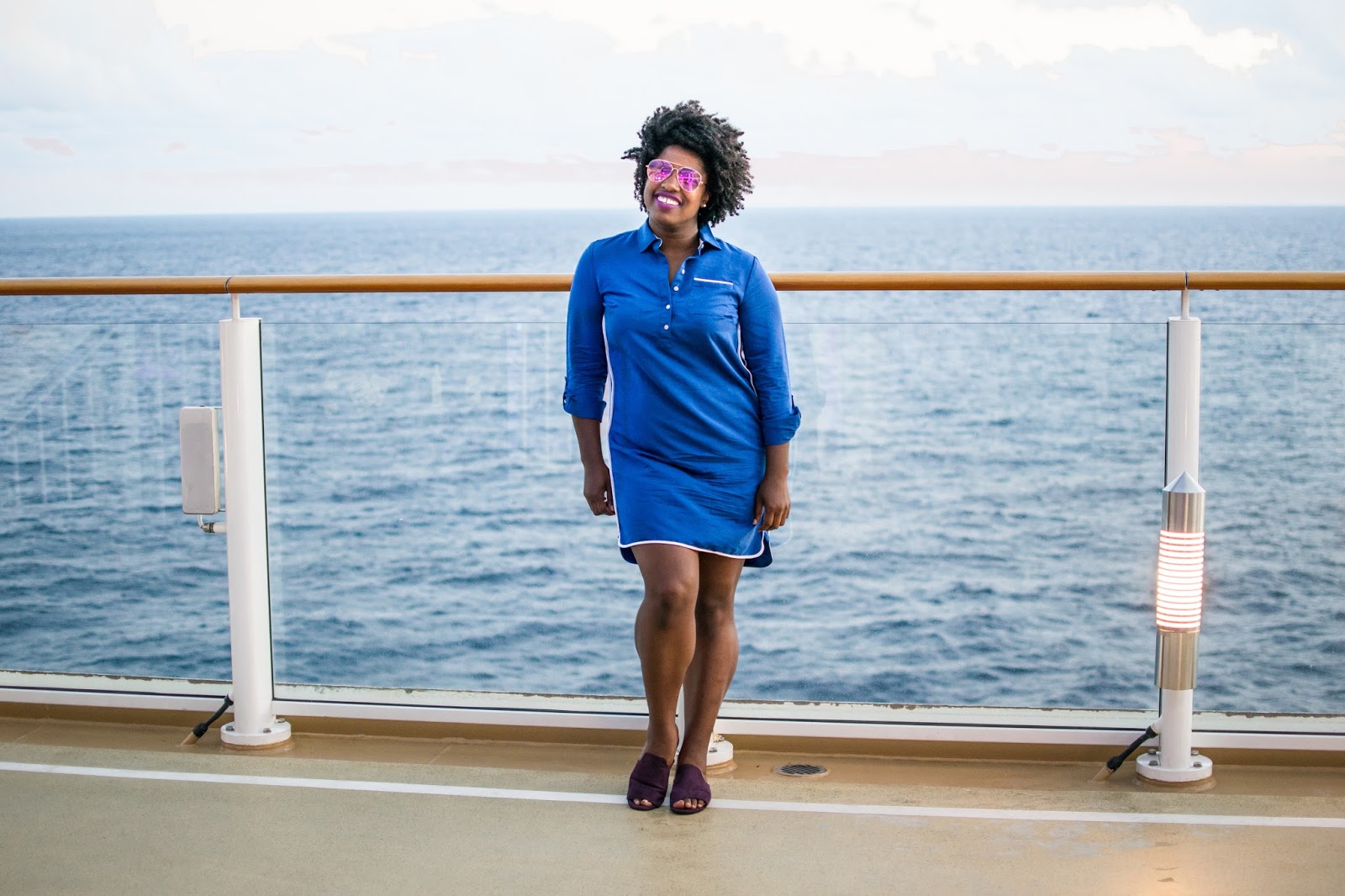 The best part about cruising is that you never know who you’re going to meet. If you know me then you know I talk to just about any and everybody, but who would have thought I’d get approached by strangers first, it’s usually the other way around. We spent two days at sea, which I can honestly say in the past has been way more than I can handle, but I guess when you keep yourself busy on the ship it’s not so bad. By the way, it’s very hard to be bored on a cruise ship, just saying. My mission for a day at sea, to make sure this awesome vintage Tommy Hilfiger dress sold by one of my fav vintage Instagram shops, @brassbuttonsvelvetropes was featured on my blog. Only a few shots in and we were interrupted by a group of 20-somethings who had their fair share of drinks and were exiting the ship party. Well, one thing led to another and they became apart of the CCC family; my brief explanation for why they are on my blog, LOL.