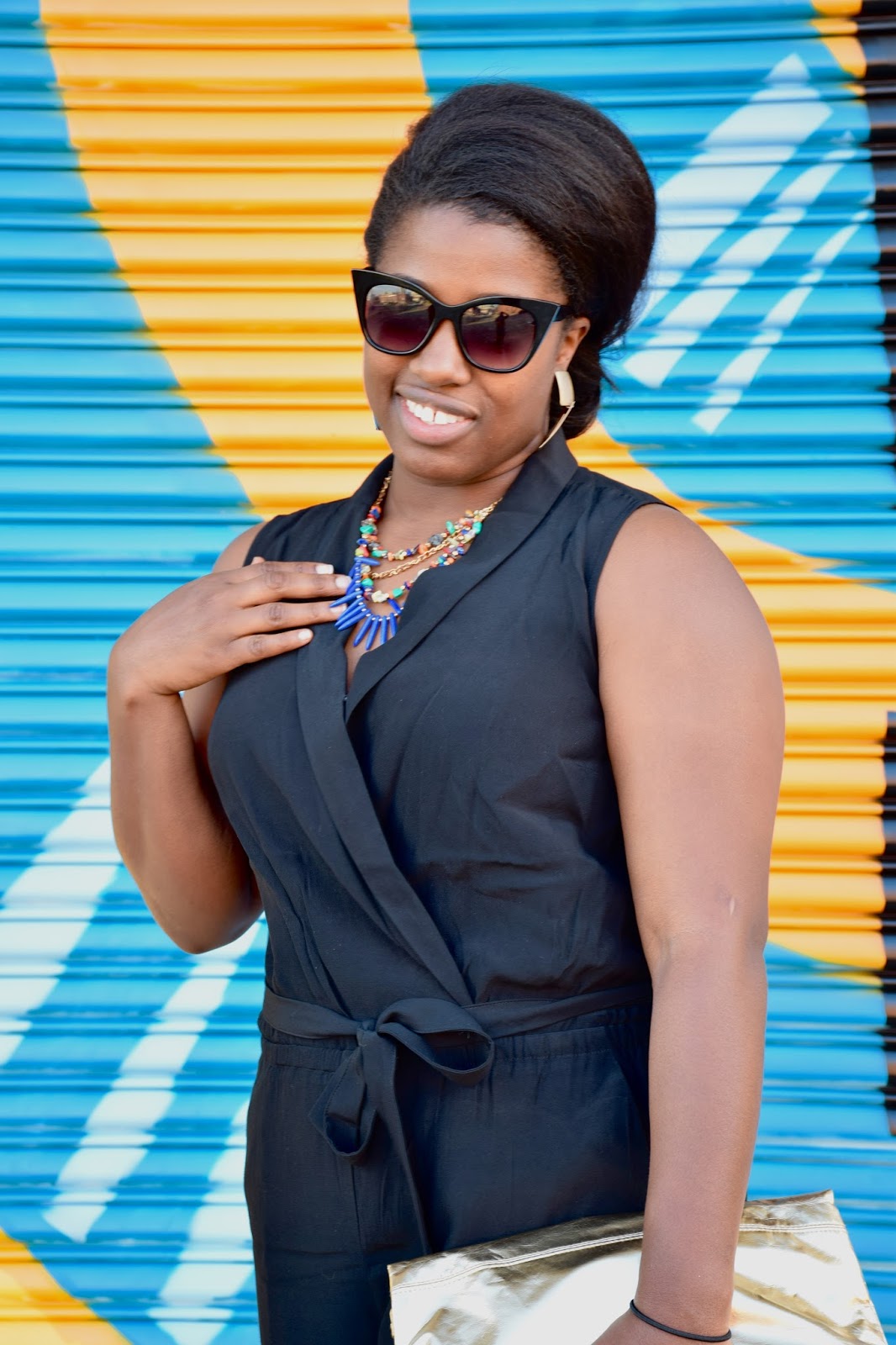 | Black jumpsuit with front tie |