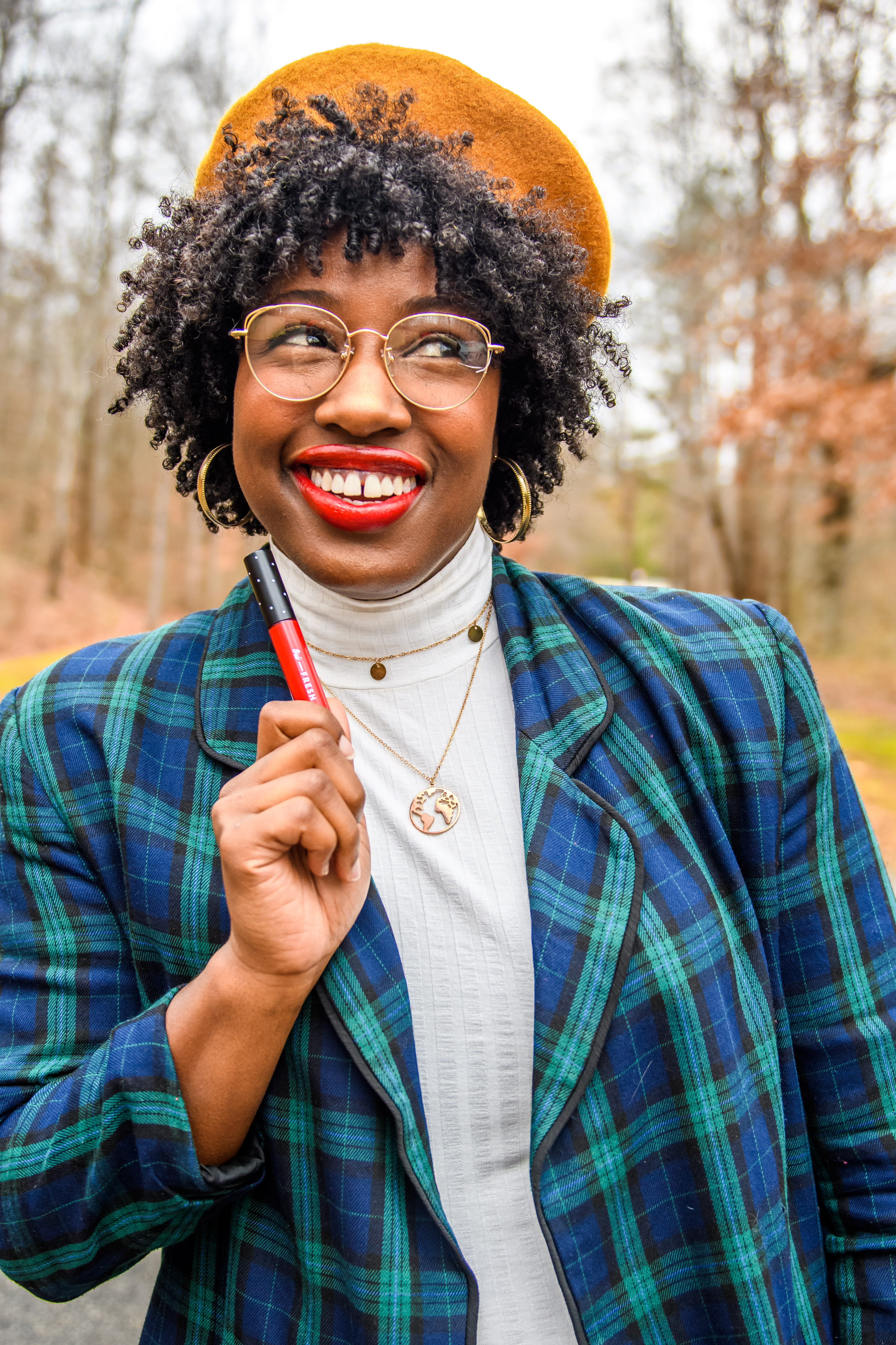 So you don’t want to look like a total train wreck, so if you’re gonna mix prints, and if you’re gonna to mix plaids, your make-up look is key too. It’s kind of like your hair; I can’t stand dressing up if my hair isn’t done, it just throws the whole look off if you know what I mean, maybe you don’t, but still, LOL. 😂 I’m a simple girl when it comes to make-up, with the exception of pageants, I try to keep it simple and just do a bold lip. Consider your make-up look when attempting to pull a mixed plaids look together. It’s easy for this to go south fast, so I always say keep it simple, but fun with the makeup and don’t take yourself too seriously. I opted for the Lava Lamp red lip gloss by Ouifresh. Shop this lippy here if you’re diggin it as much as I am.