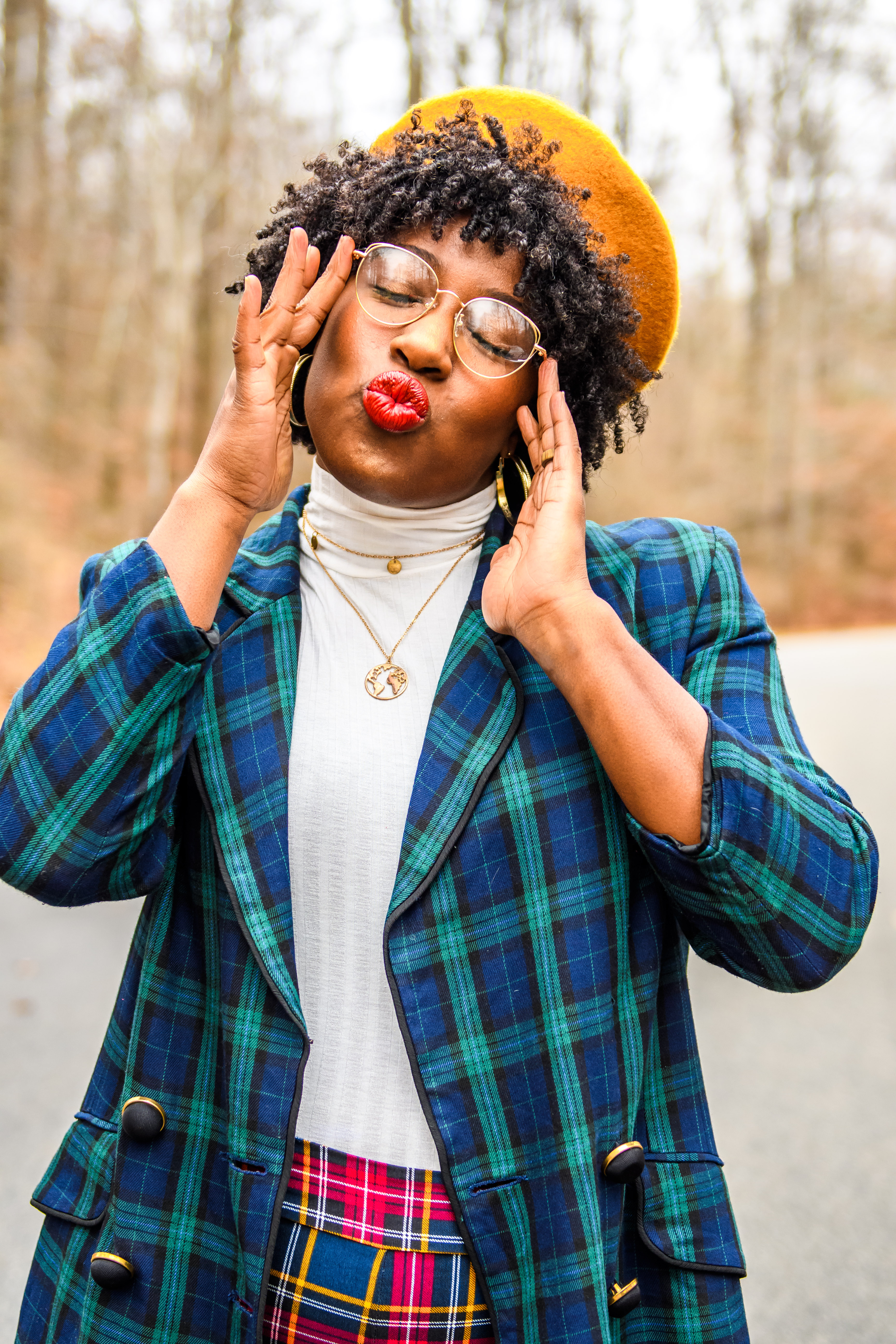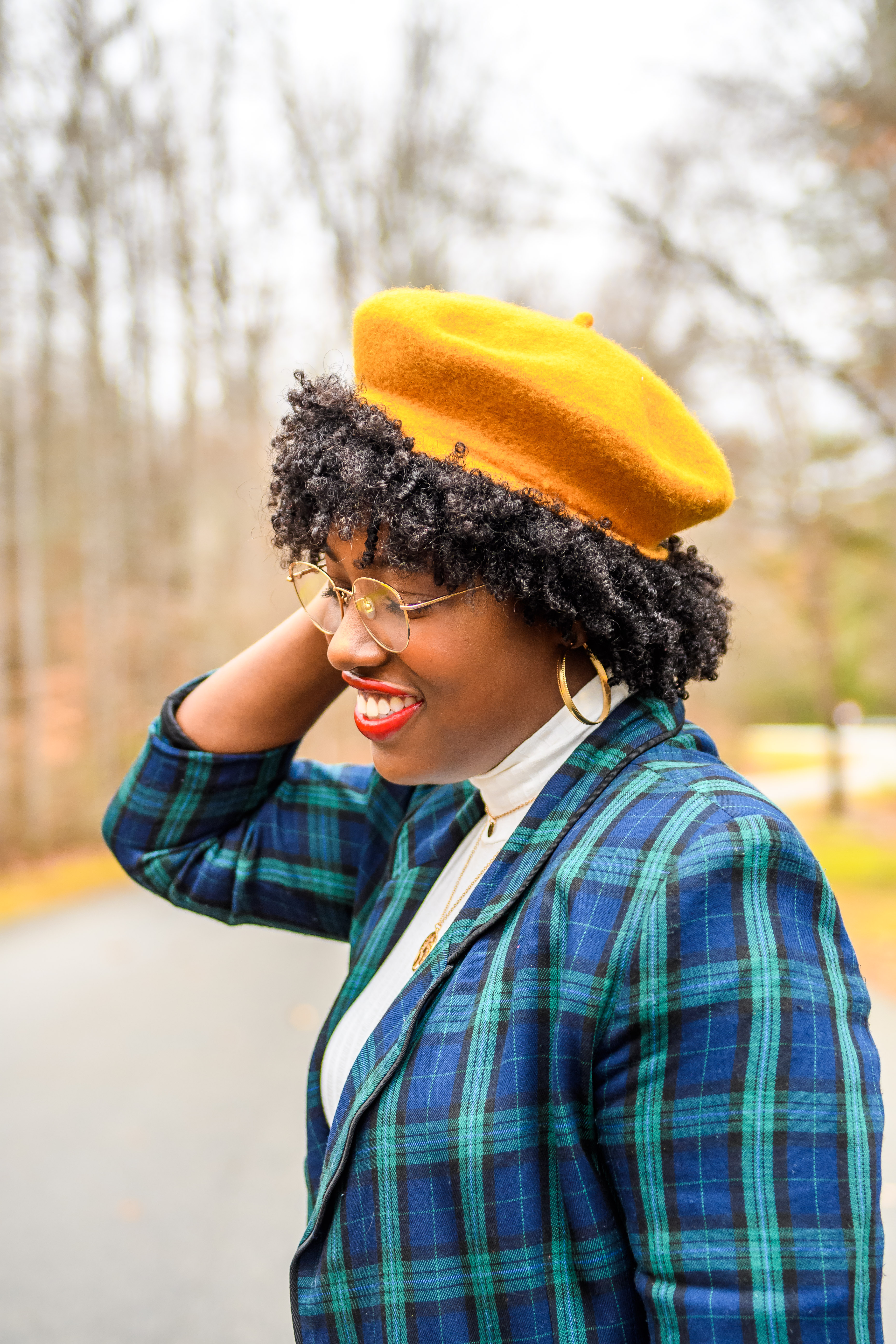 By the way, my mustard yellow beret and plaid blazer are both thrifted finds. The beret was a whopping $1 and I can’t quite remember the price of the blazer, but is was dirt cheap. Say it with me guys #winning.