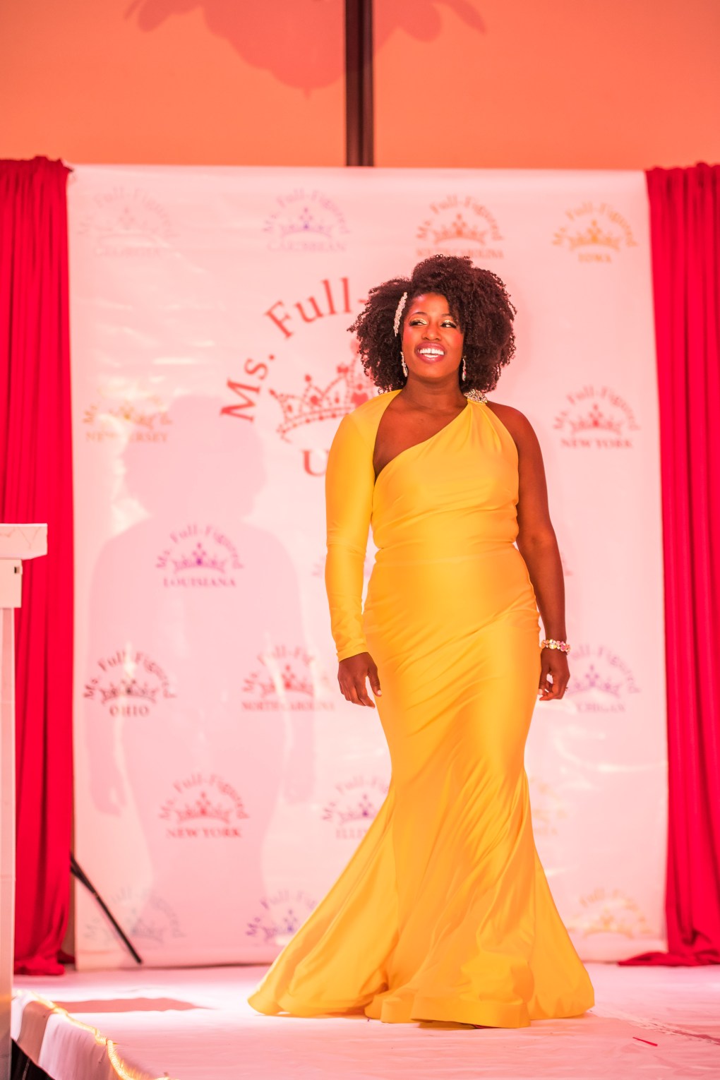 I’ve never really considered yellow the best color on me, but this gown did me all the way in. I was shocked and admittedly scared to order such an over the top color, but had to remind myself that pageants are meant for you to be over the top.