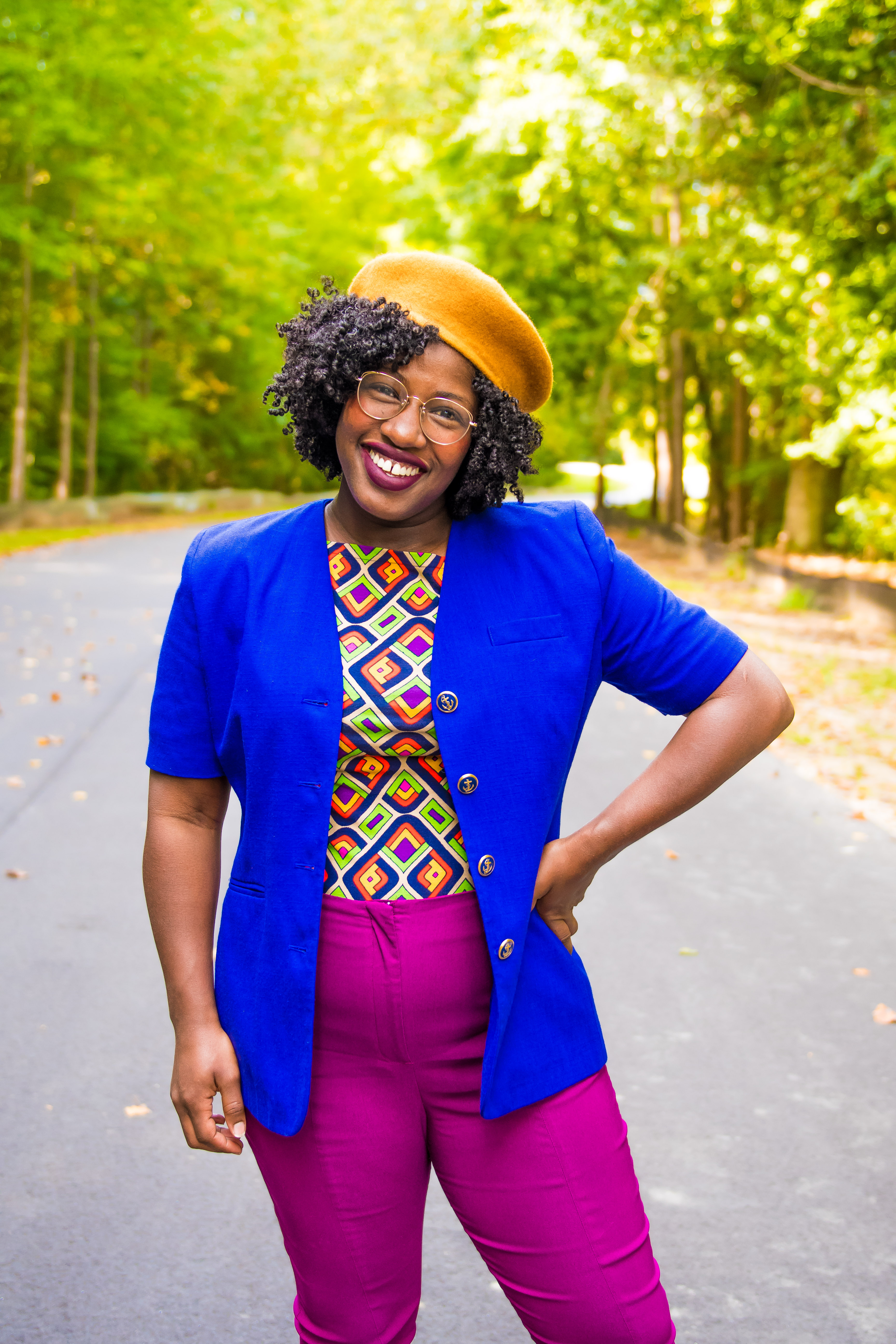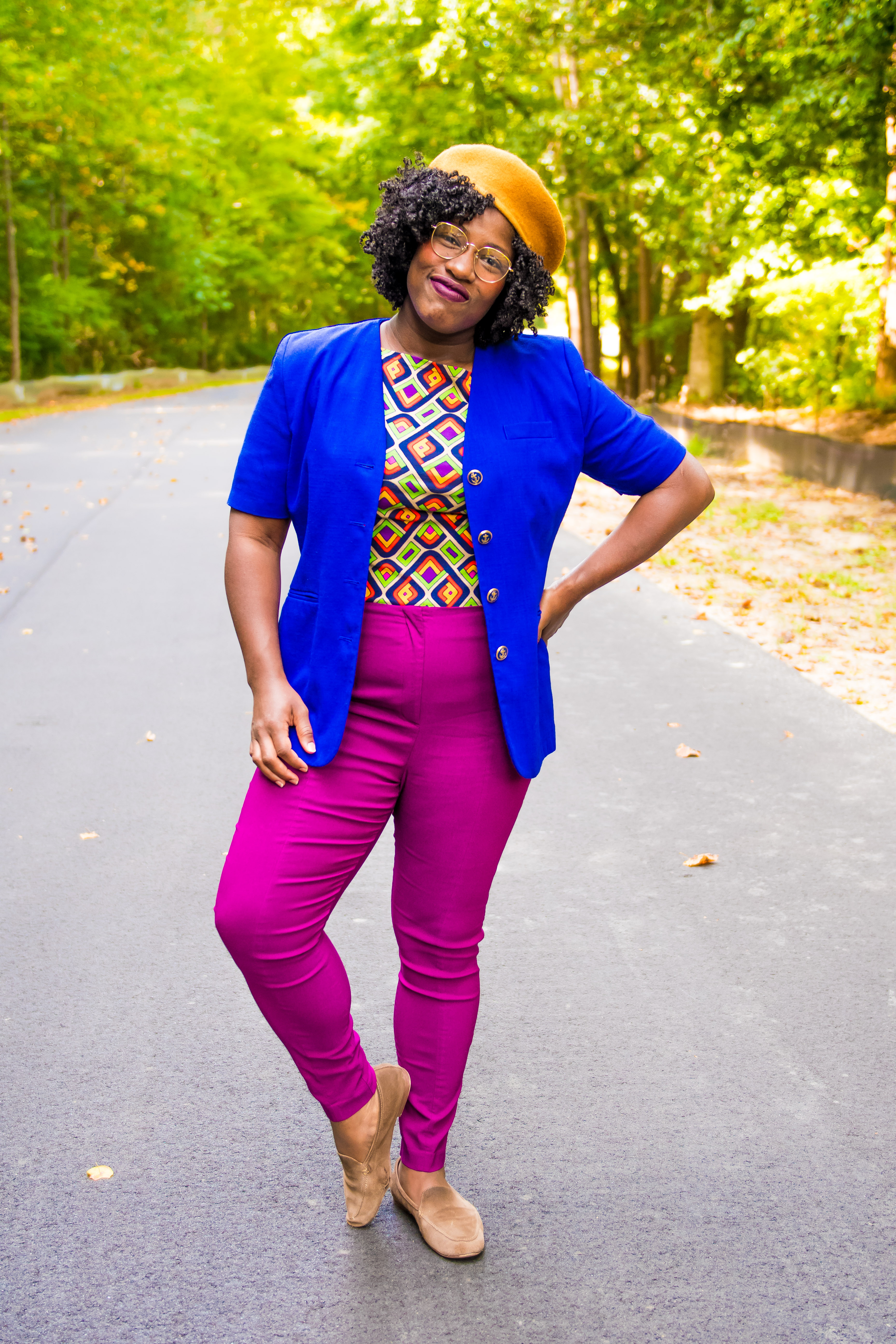 Usually, I’m a little crazier with my accessories, blending whatever feels good at the moment, but for this look, I kept it simple and added a mustard yellow hat to draw in the yellow in my pants and did all over gold accessories. Sometimes, if nothing else is matching and you want to match head to toe, using your accessories to bring the whole look together is key.