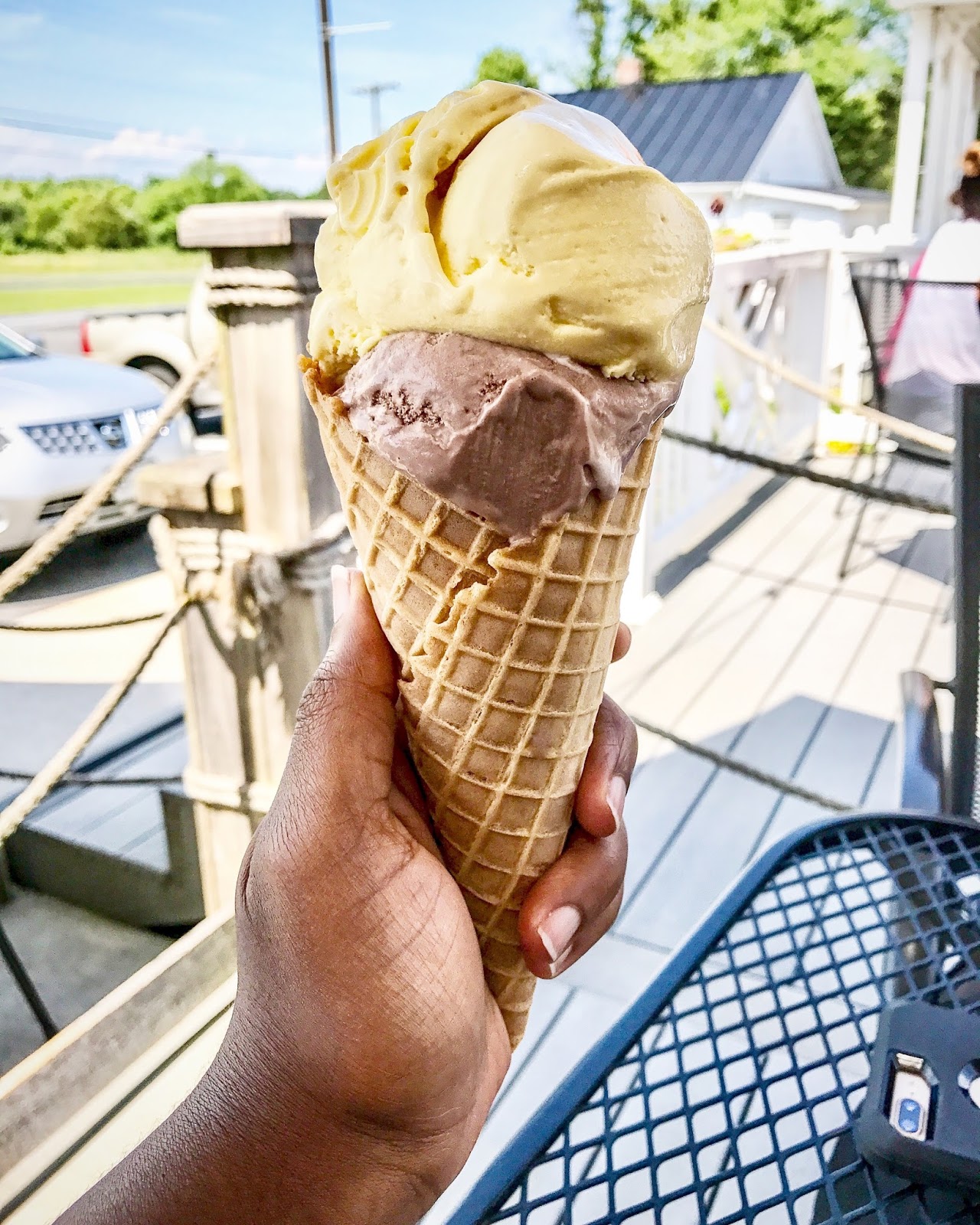 | Grammies Ice Cream banana and marshmallow on waffle cone |